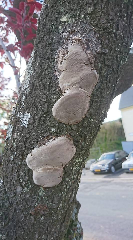 Danke das ist bestimmt diese Pflaumenfeuerschwamm.Ich habe in Internet geschaut und sieht genau so.Danke