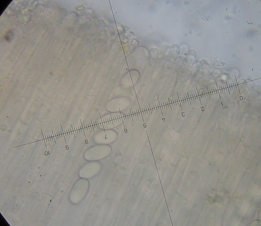 Asci: 180 x15µ, IKI -. Sporen glatt ,15 x8µ, ohne Schleimhülle, ohne Guttlen