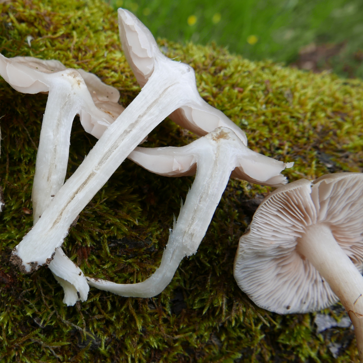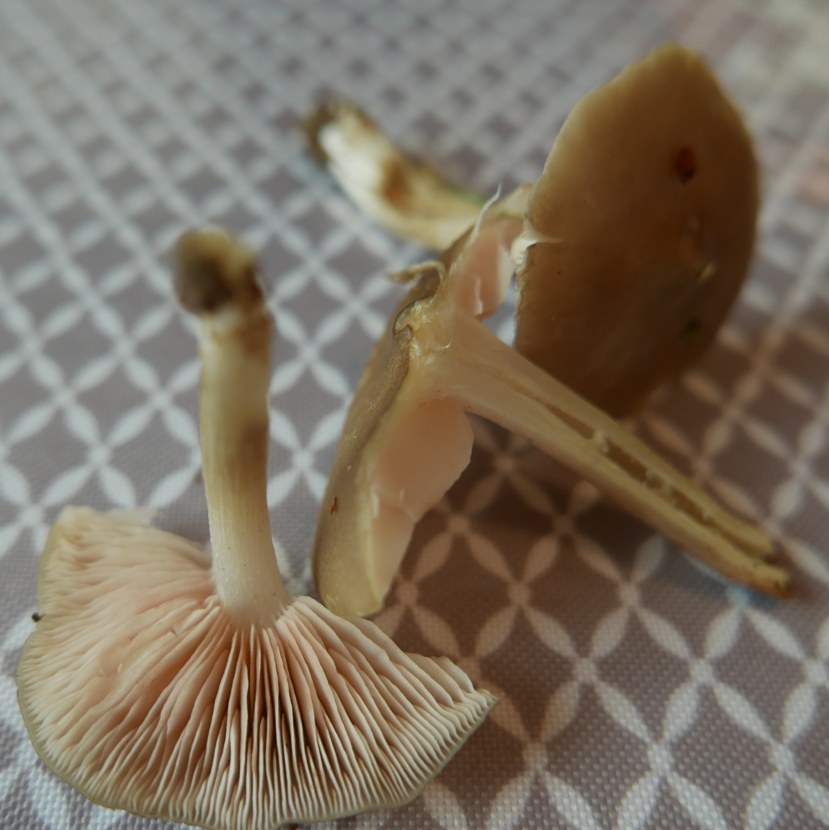 16. Und hier nun der Pilz, den ich unter den Apfelbäumen auf der Wiese an einer Stelle zahlreich fand, etwa 20 FK. Hut 4-5 cm, Geruch ziemlich sanft nach Gurke/Mehl/ranzig/tranig, eigentlich so dieser typische Rötlingsgeruch, aber eben nicht so streng