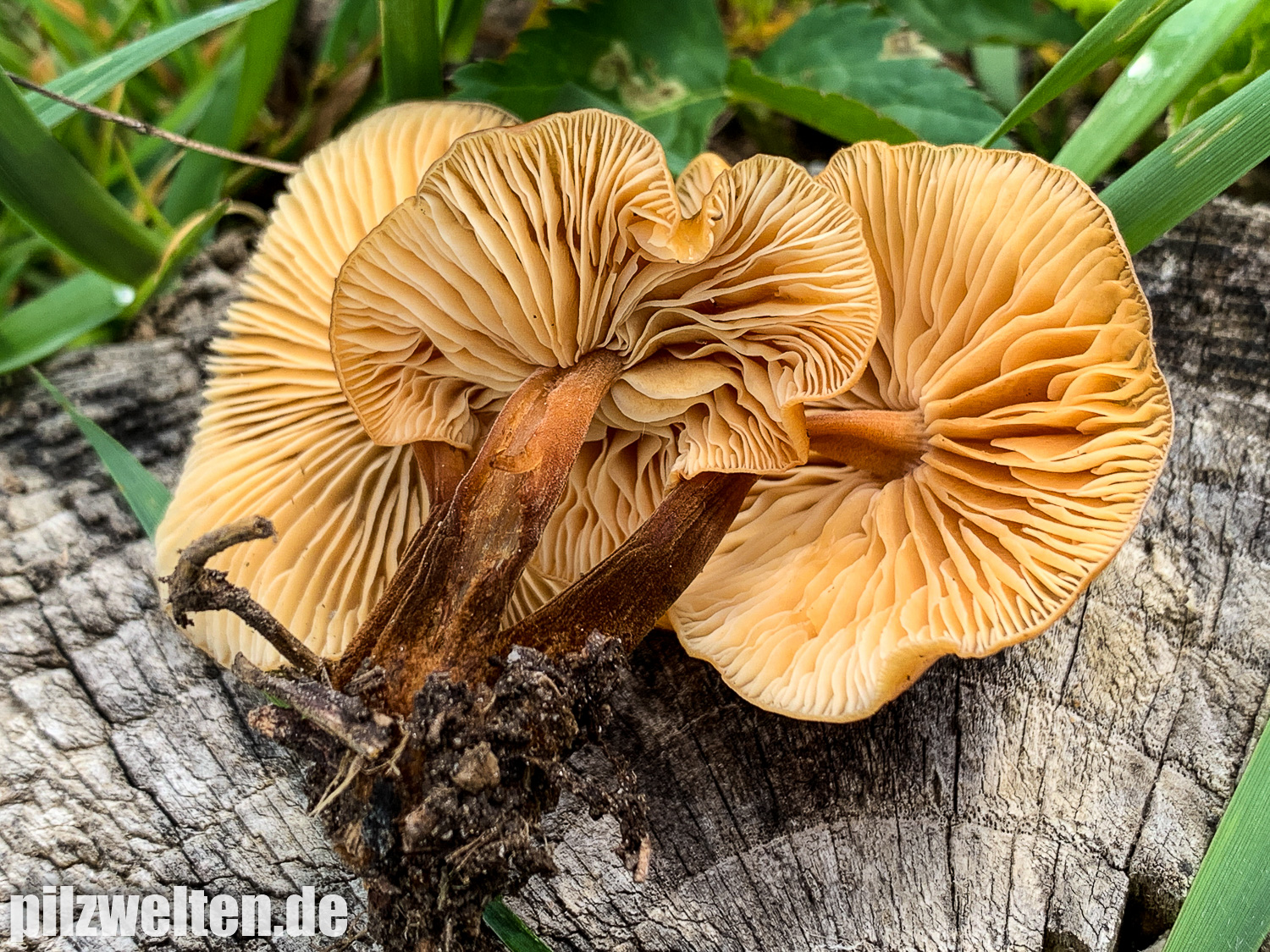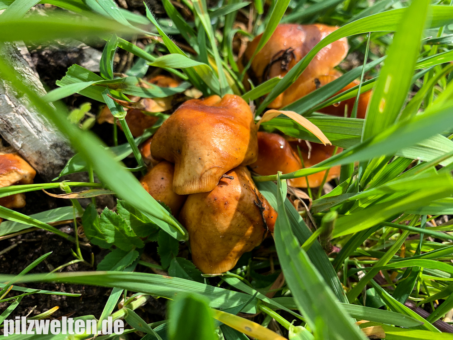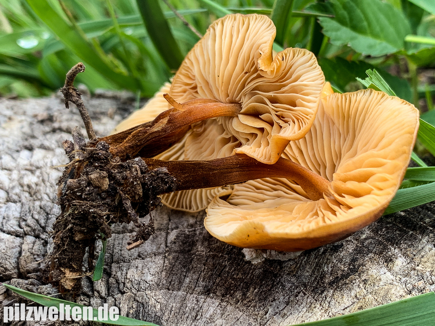 direkt an einem Speisemorchel-Hotspot wuchsen auch die folgenden Exemplare, die wir nur als Samtfußrüblinge bestimmen konnten. Hätten wir jetzt November / Dezember / Januar / Februar oder vielleicht noch März, dann würden wir das auch bei Samtfußrübling beruhen lassen, aber wir haben mittlerweile ja fast Mai und Frost gab es (zum Glück) auch keinen.