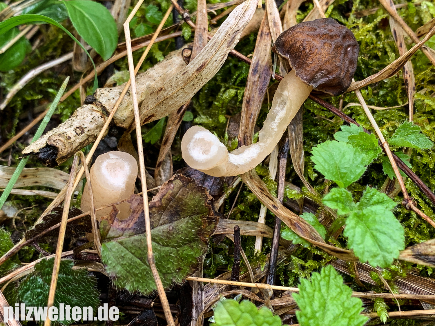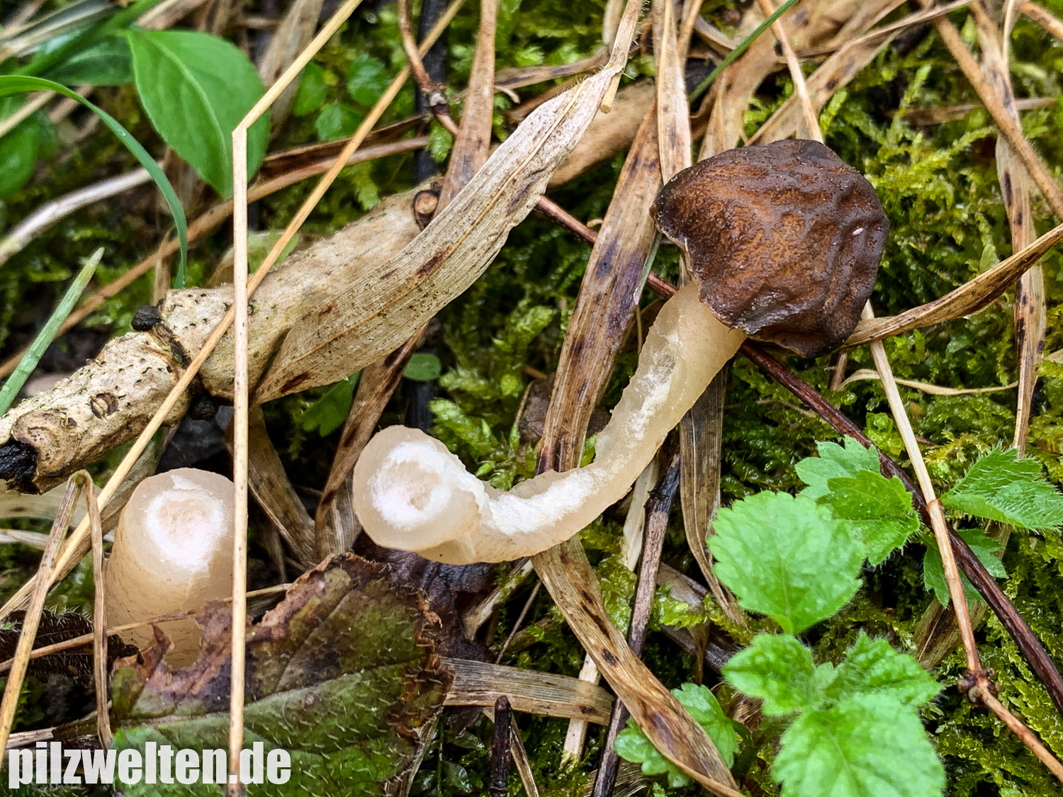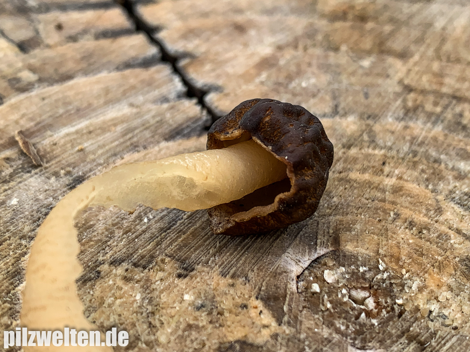 Auf unserer heutigen Morcheltour konnten wir u. a. die beiden folgenden Funde machen, die wir als Verpa conica bestimmt hätten. Der erste Fruchtkörper lag bereits am Boden, weshalb wir ihn für ein "Mini-Schnittbild" (leider nur oberes Drittel) genutzt haben. Den noch intakten Fruchtkörper wollten wir nicht entnehmen.