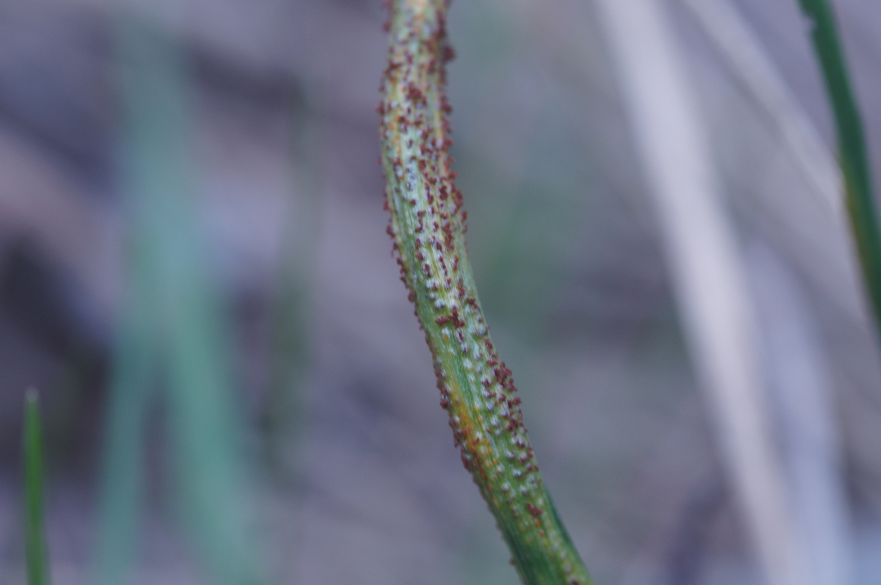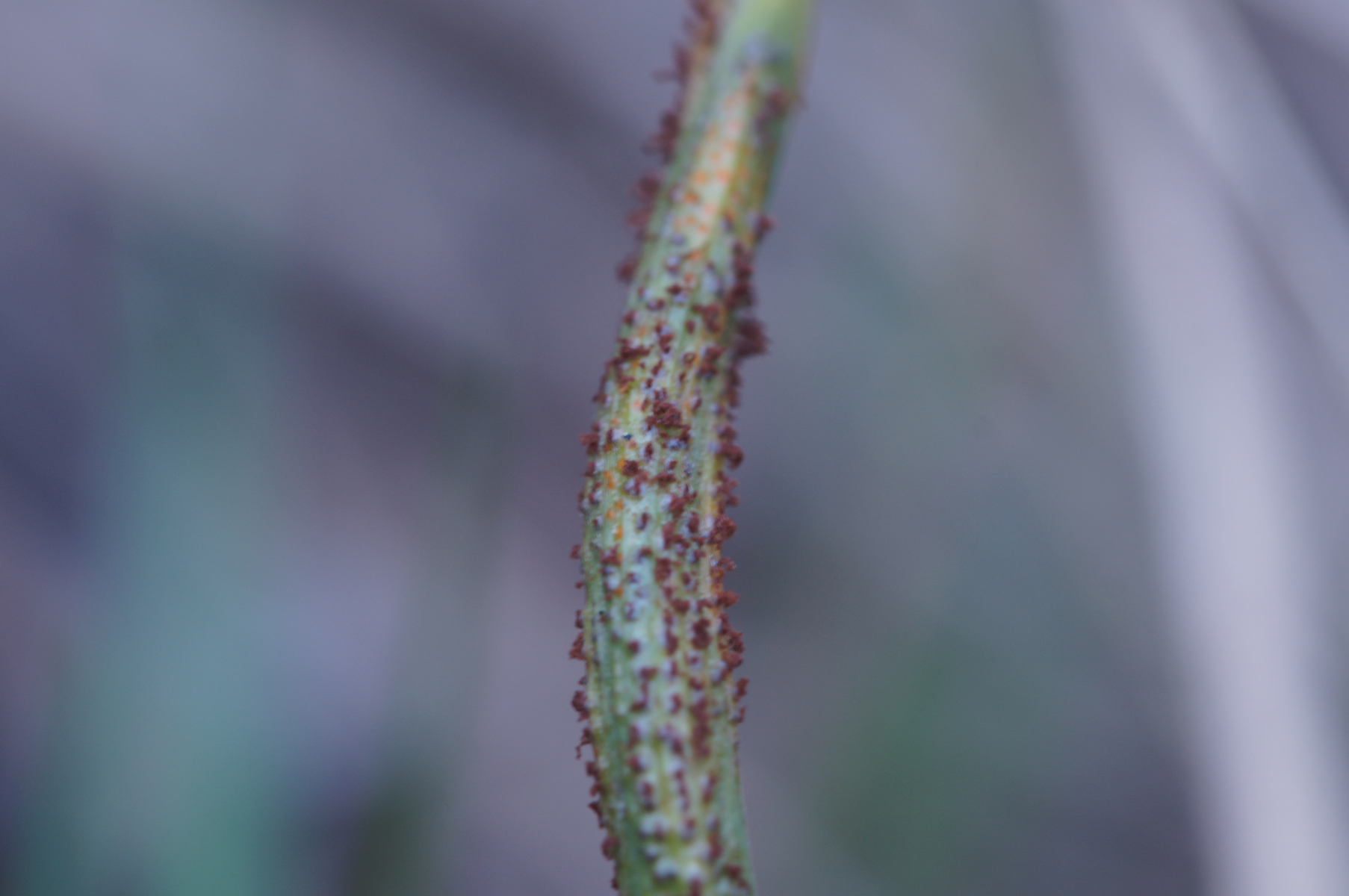 Im Garten meiner Eltern fielen mir plötzlich mit Rost befallene Blätter eines Frühblühers auf. Nur welcher? Ohne Blüten ist das immer so eine Sache. Jule wusste sofort bescheid und konnte Pflanze und Pilz schnell bestimmen. Es ist ein recht häufiger Pilz, für mich aber ein Perser. Puccinia liliacearum auf Ornithogalum umbellatum, dem Dolden-Milchstern.