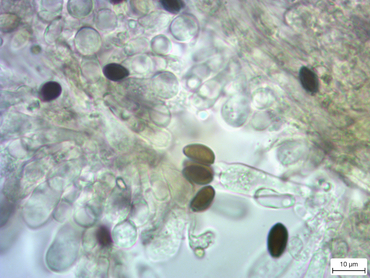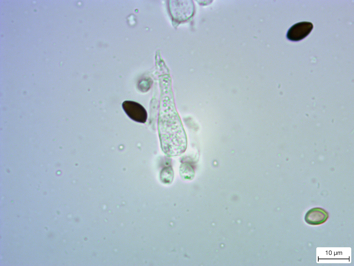 Um Euch zu beeindrucken habe ich auf dem letzten Bild ein Basidienpräparat von einer isolierten Basidien mit juvenilen Sporen angefertigt