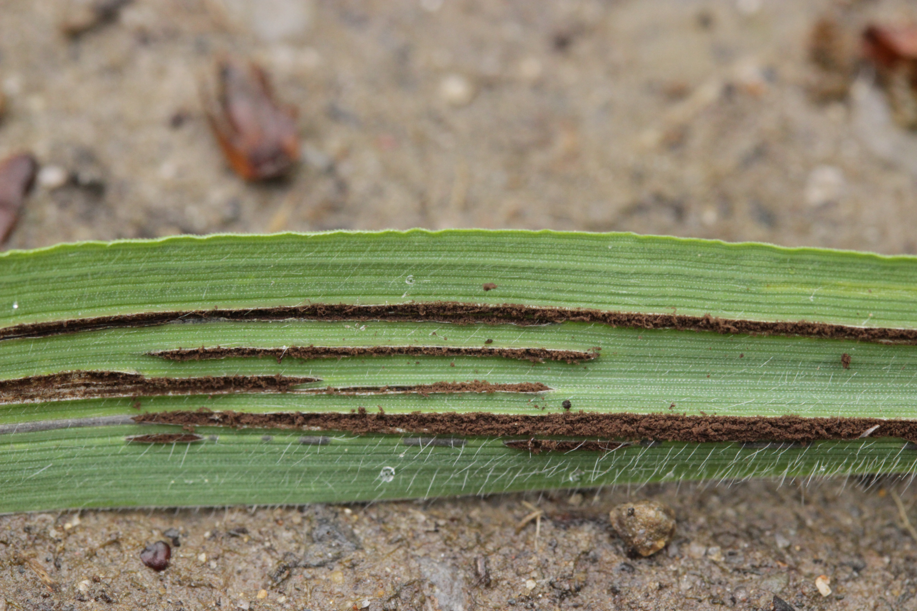 3. Ein Brandpilz an einem Gras. Das Gras wurde von unseren Botanikern vor Ort als Dactylis glomerata bestimmt, womit man dann bei Urocystis dactylidina auskommen würde. Das wäre ein Pilz, der das letzte mal 1967 im Kanton Vaud in der Schweiz gesichtet wurde... da müssen wir also zur Sicherheit noch mal einen besseren Blick auf das Gras werfen.