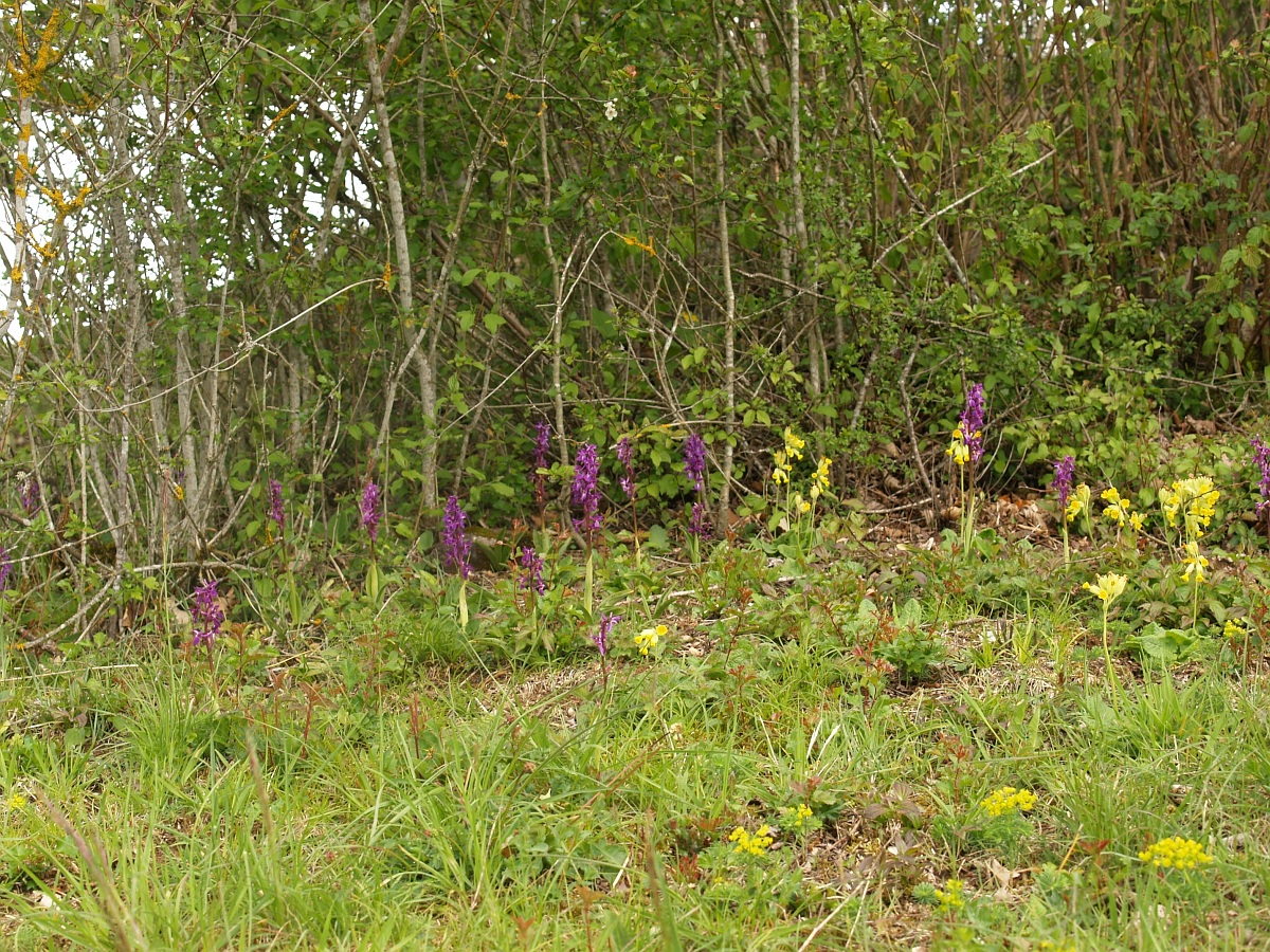 Der nächste nächste Stop erfolgte bei einer mageren Wiese, die wir aus der Vergangenheit kannten. Im Halbschatten blühten zwischen Echten Schlüsselblumen (Primula veris) etliche Exempare von