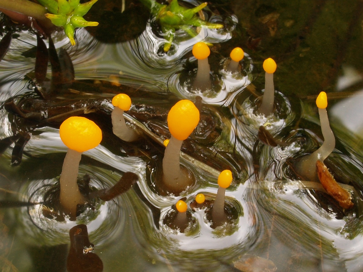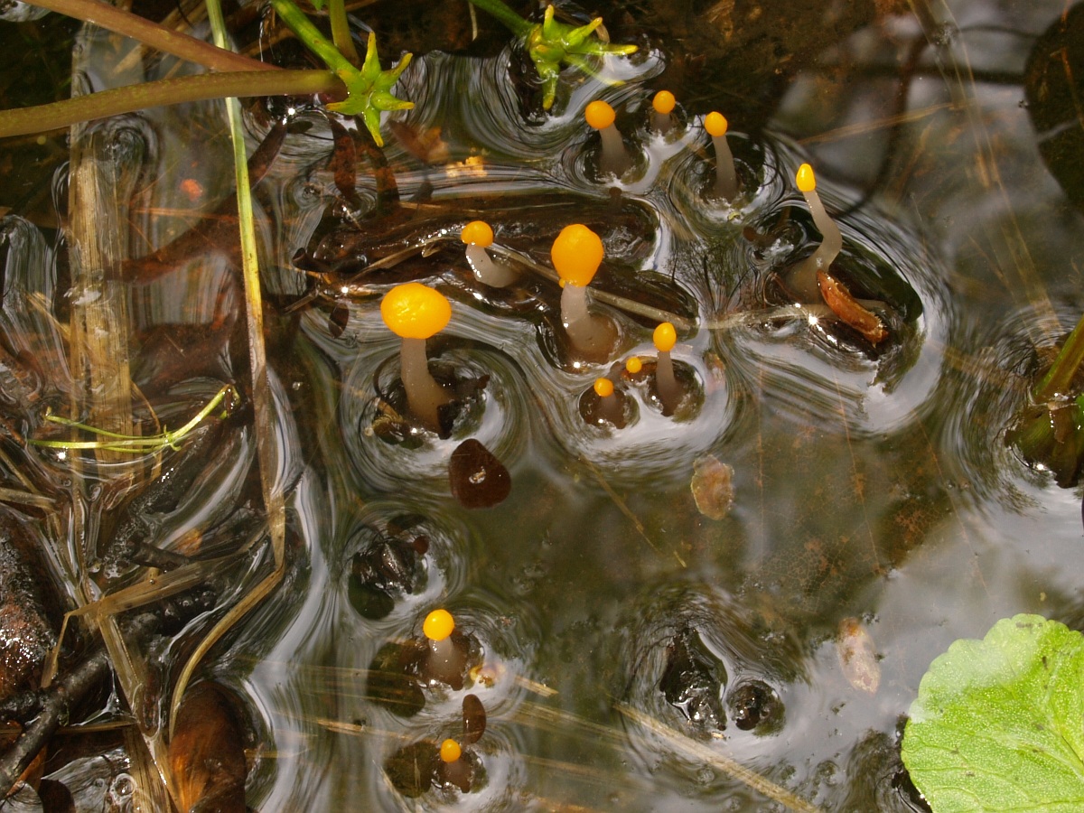 Der Sumpfhaubenpilz (Mitrula paludosa) gab sich die Ehre
