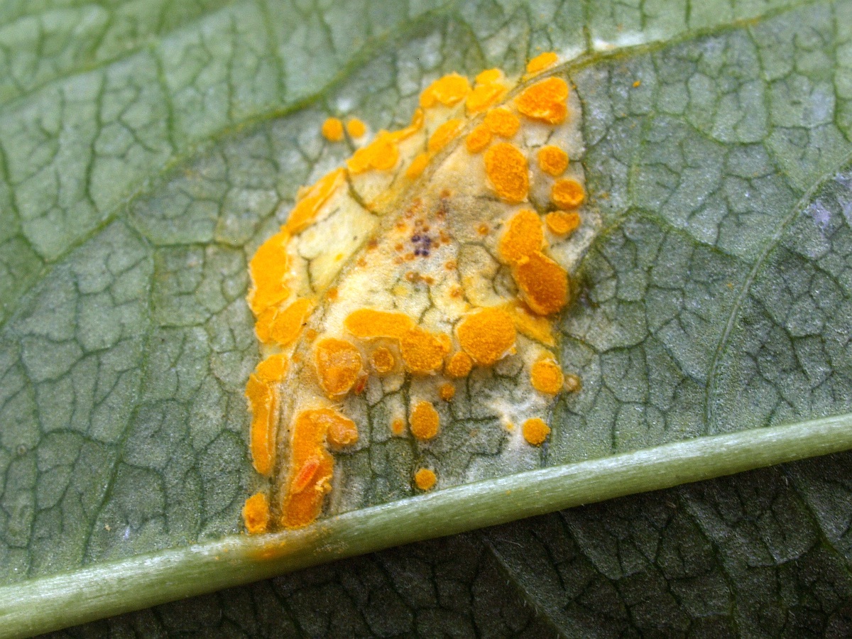 Hier der zu diesem Wirt passende Rostpilz (Melampsora rostrupii)
