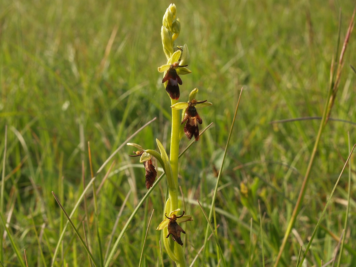 Die letze Station. Am Parkplatz trafen wir zwei bekannte Orchideenfreunde, die enttäuscht darauf hinwiesen, das die Fliegenragwurz noch nicht blüht. In Abwandlung eines beaknnten Sprichwortes "Sechs Augen sehen mehr als vier", versuchten wir unser Glück und kamen zu einem erfreulichen Abschluss eines langen Tages.