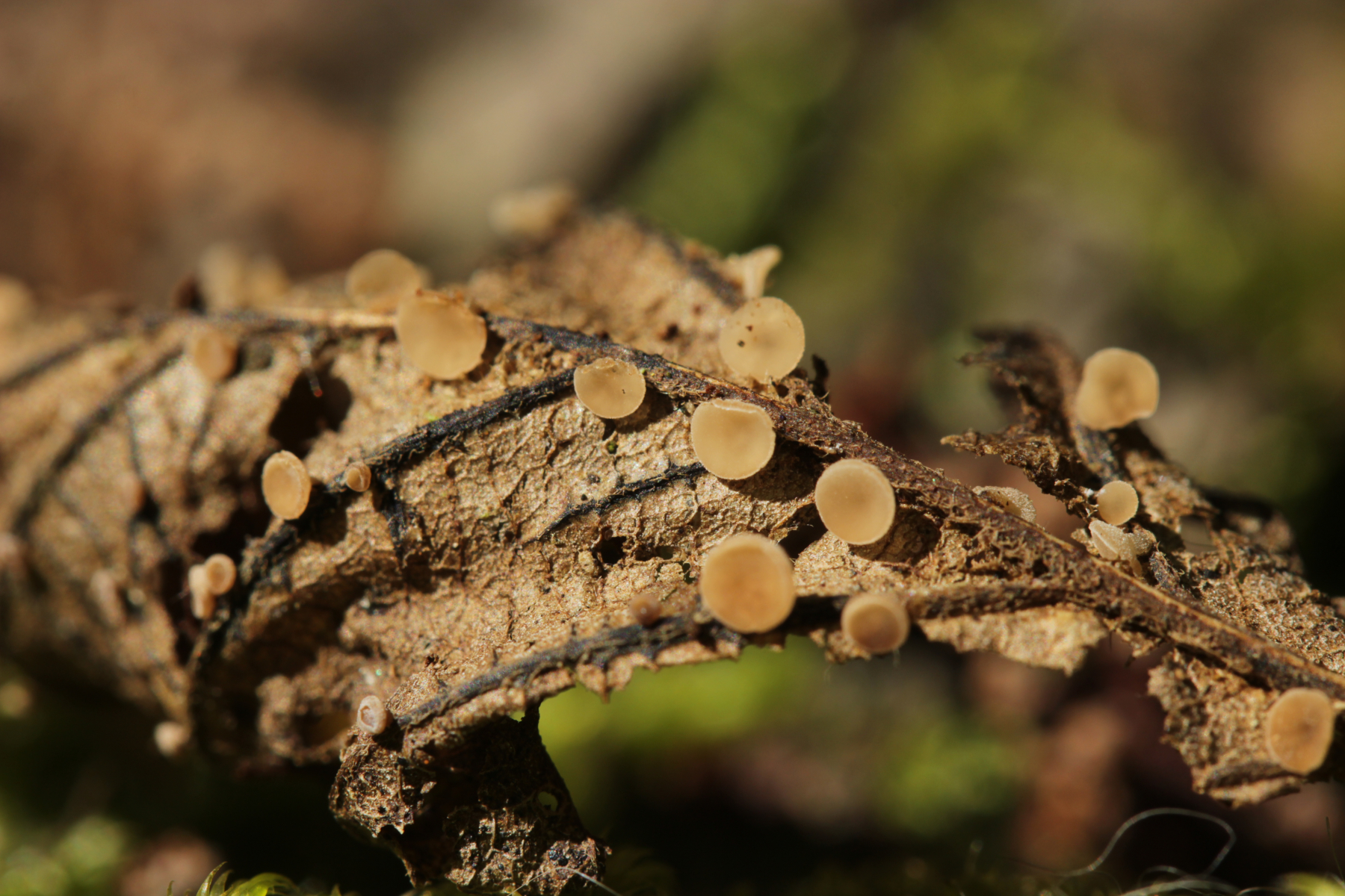 4. Becherchen an Erlen- oder Eichenblättern. Werden noch von anderen Pilzfreunden mikroskopiert.