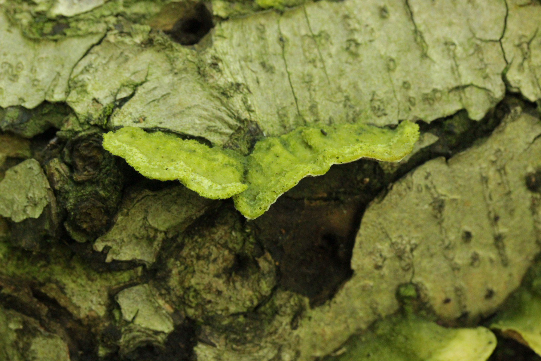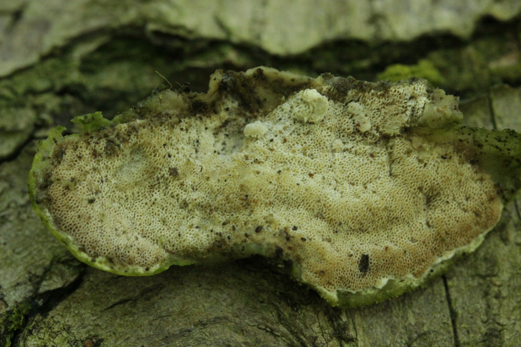 2. Gloeoporus dichrous. Hätte ich in dem Zustand erstmal auch nicht erkannt, aber an einem anderen Fruchtkörper waren der weiße Rand an der Unterseite erkennbar und das Ablösen der Fruchtschicht ging dort auch ganz leicht (danach war der Fruchtkörper aber leider nicht mehr fotogen, deshalb also hier ohne Bild des weißen Randes).