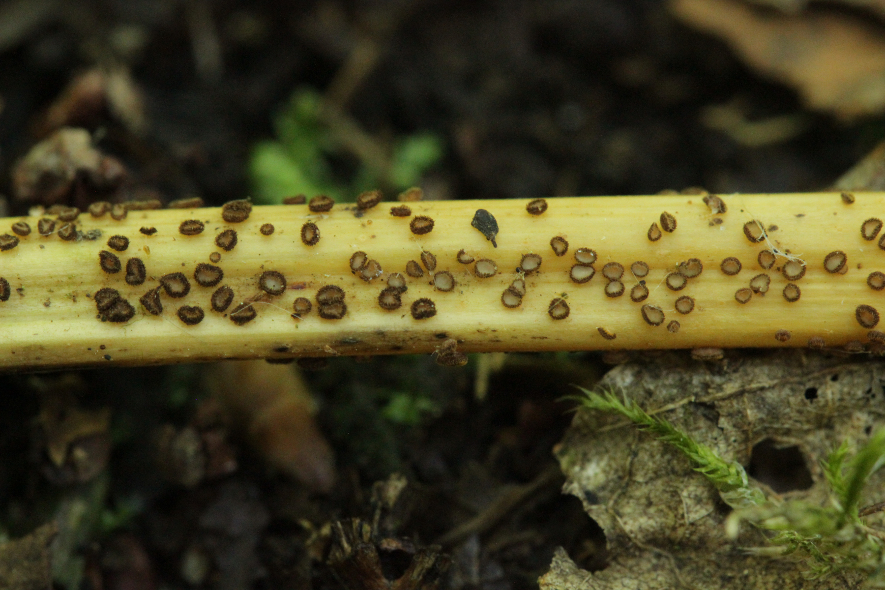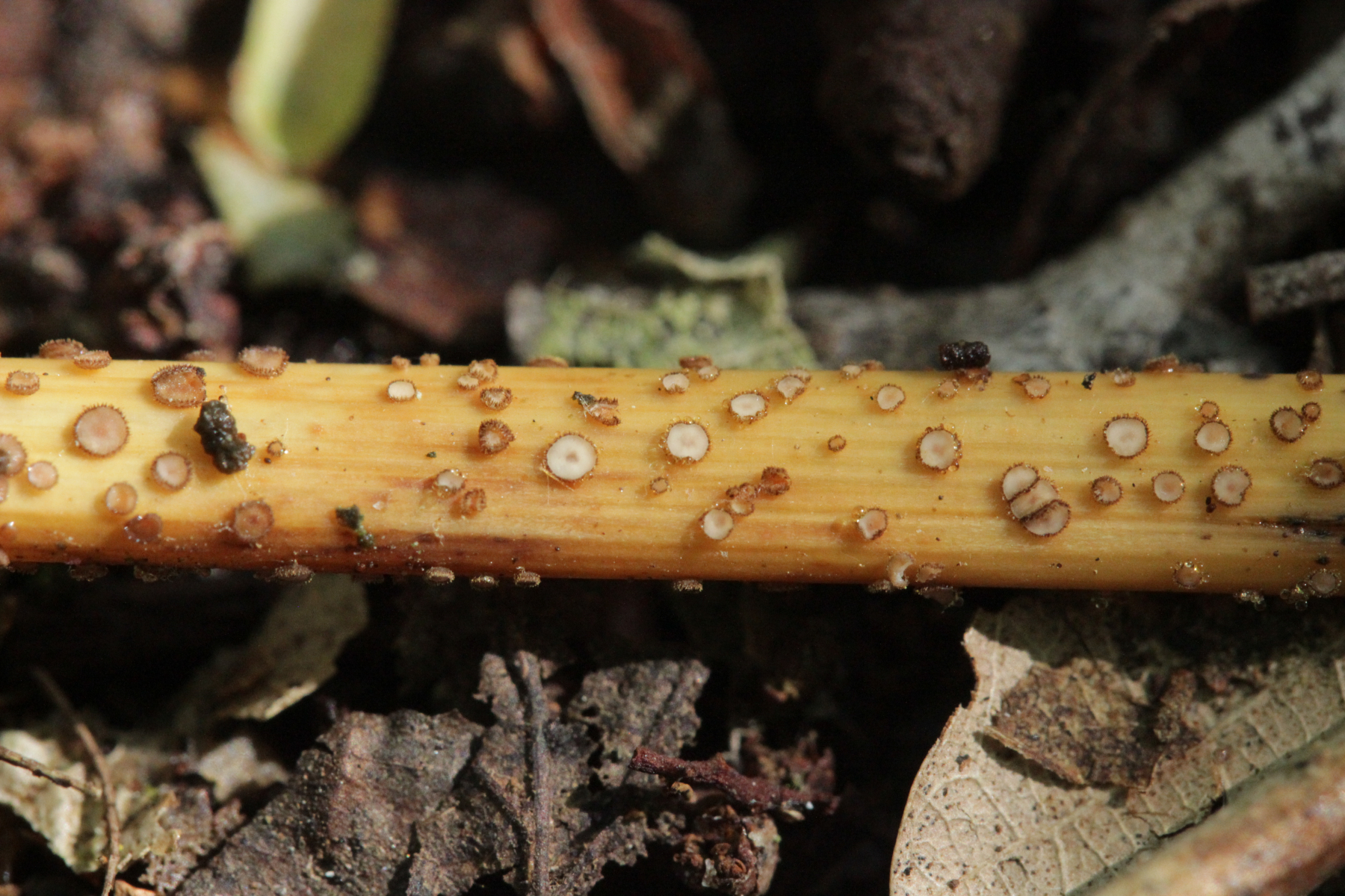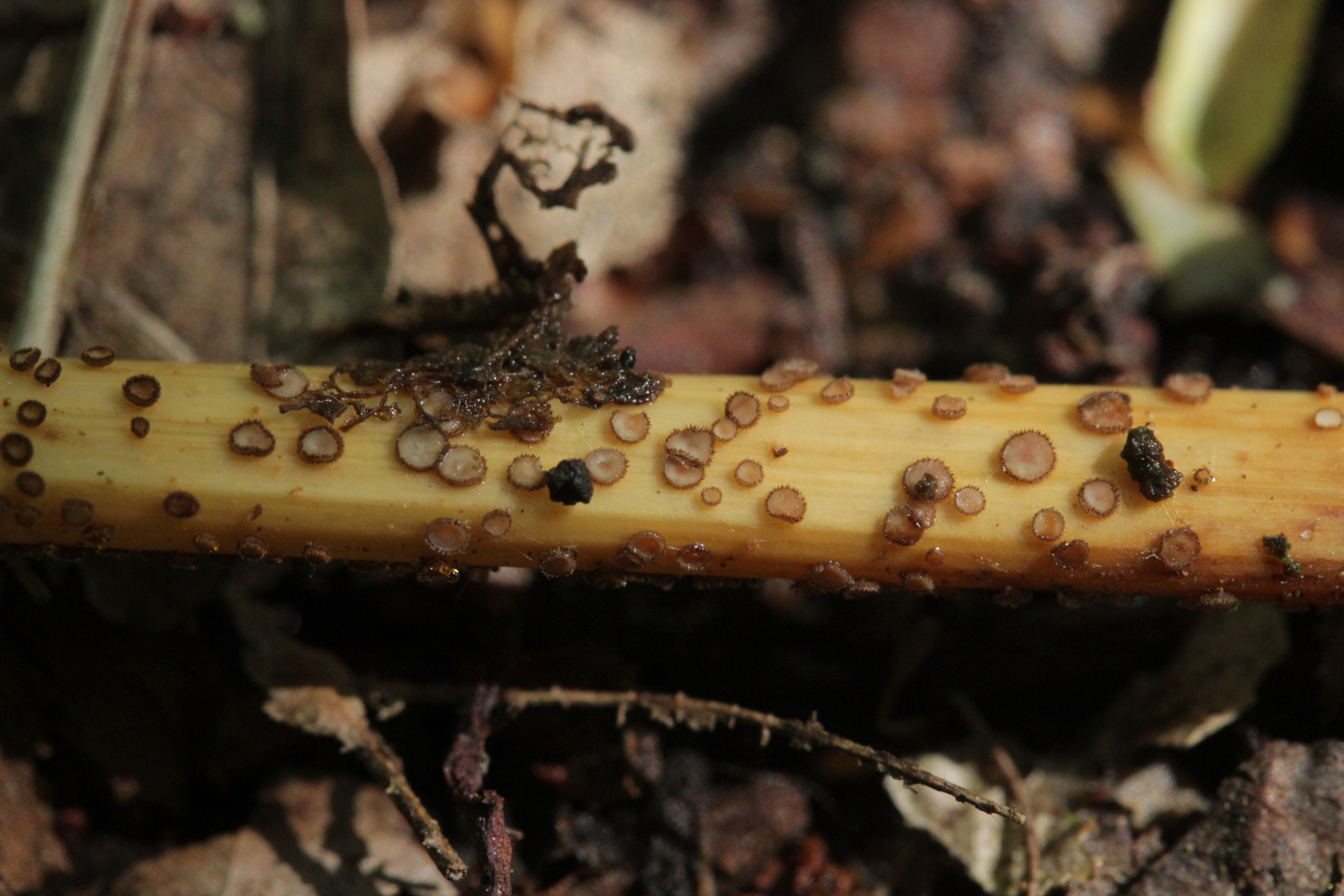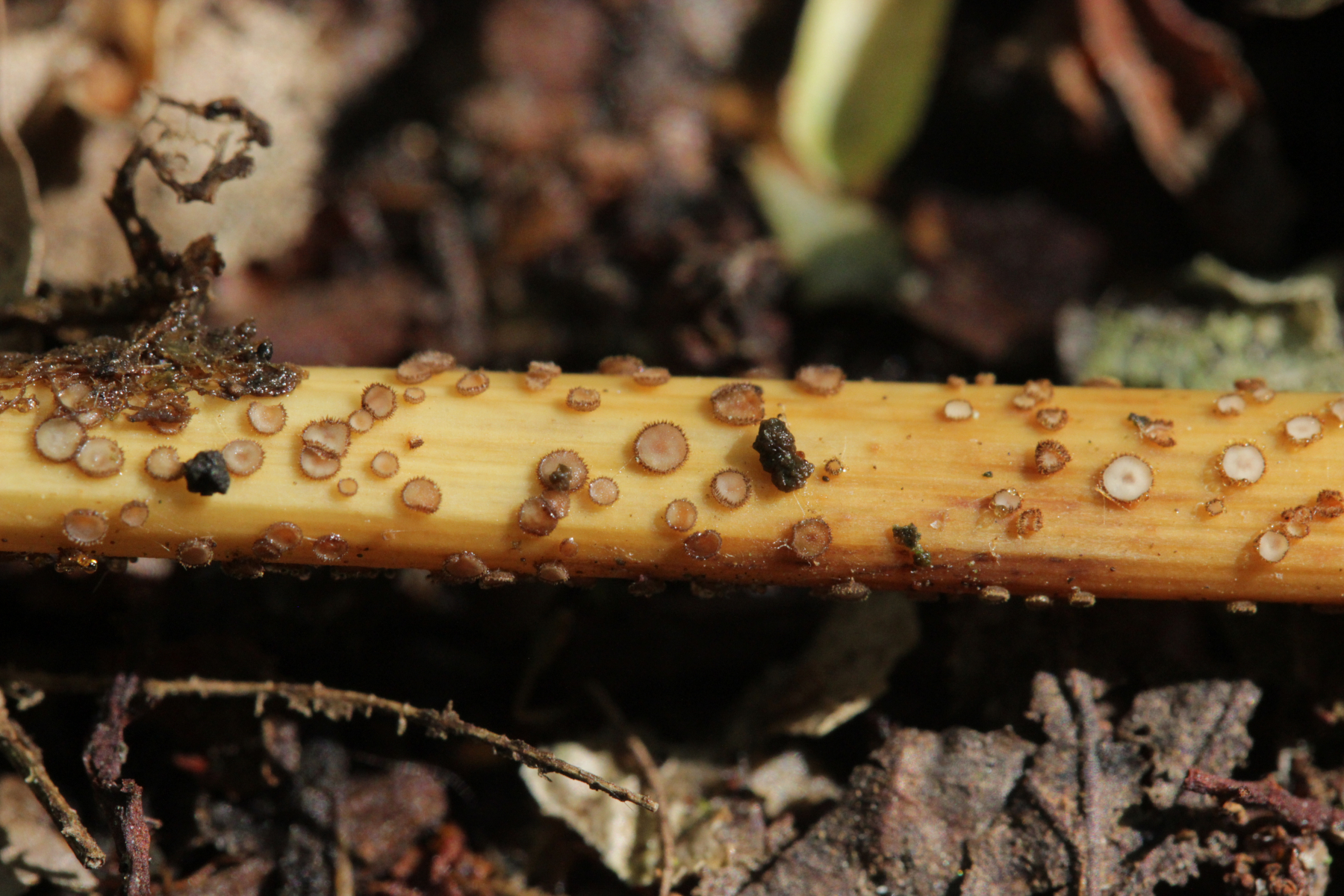 6. Trichopeziza nidulus auf vorjähriger Weißwurz