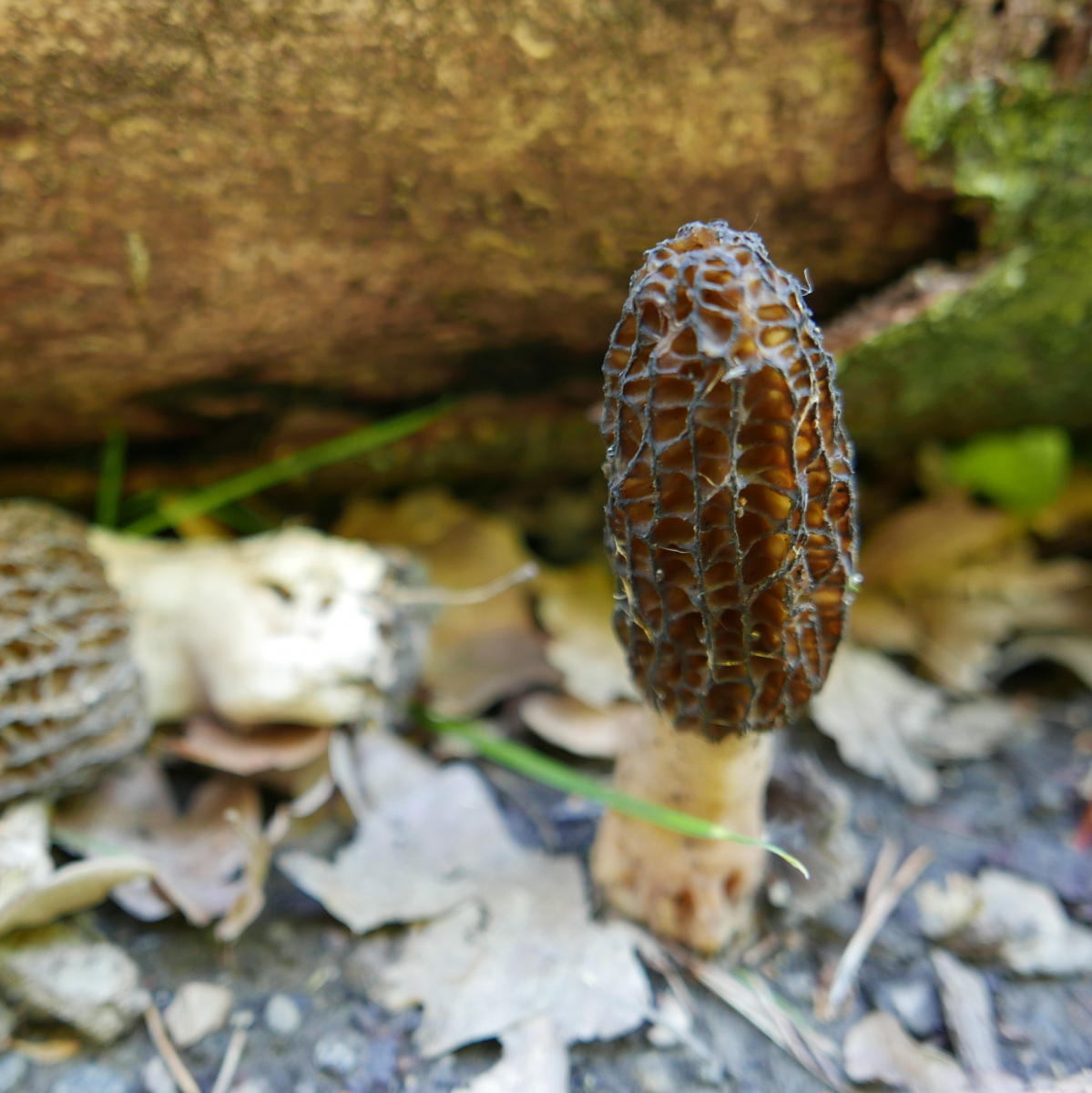 15. Morchella conica, Spitzmorcheln. Hier leider nicht zum Verzehr geeignet, da der Weg reich frequentiert ist. ![]()