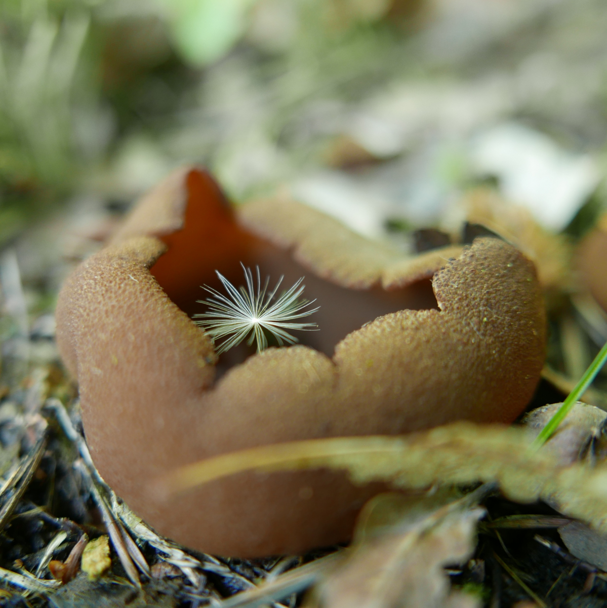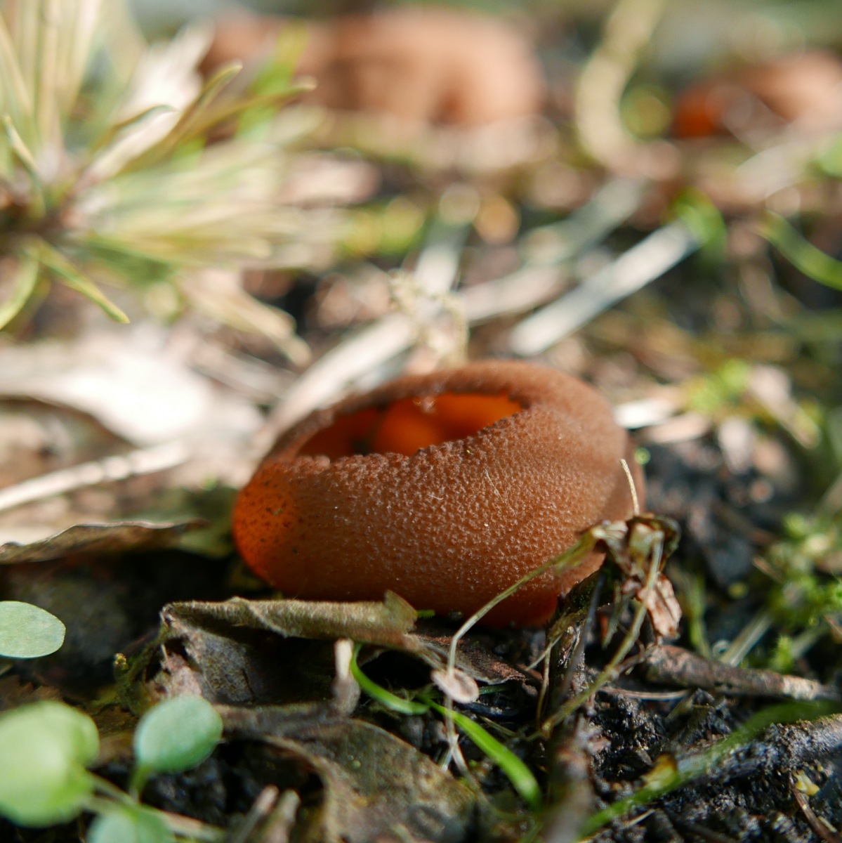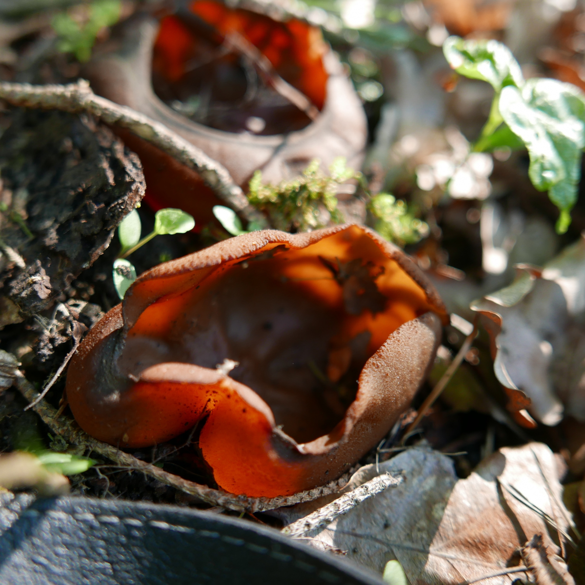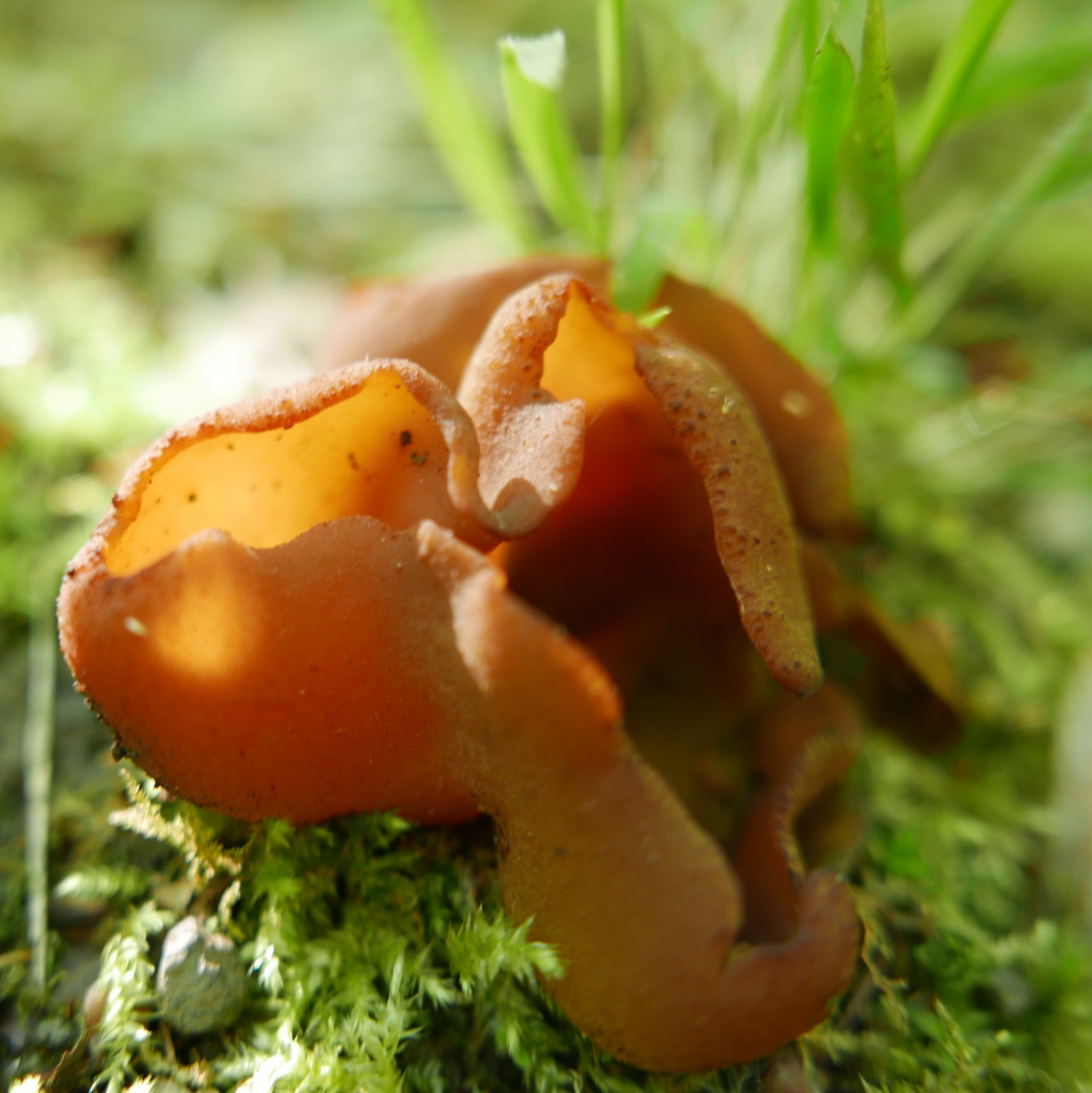 Und da waren plötzlich "so Dinger", wir wussten erst gar nicht, oh, doch, wow! Becherlinge, große Becherlinge. So viele, dass man nicht wusste, wie man sich hinhocken soll zum fotografieren!