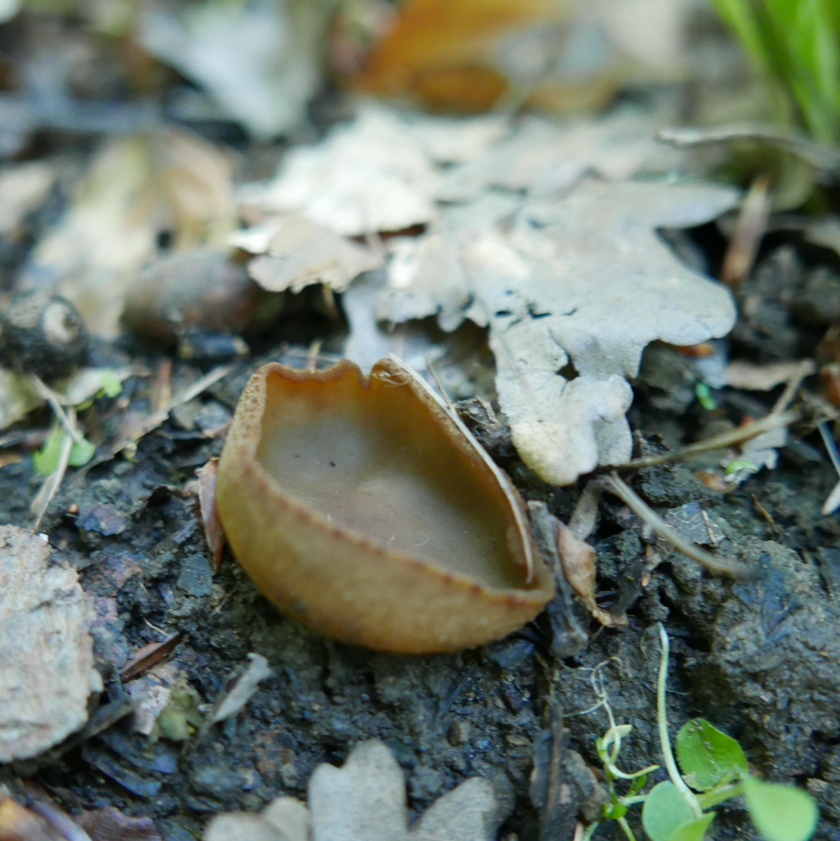 16. Und diese Becherlinge hat Harzi bestimmt als Peziza phyllogena, rötlicher Becherling