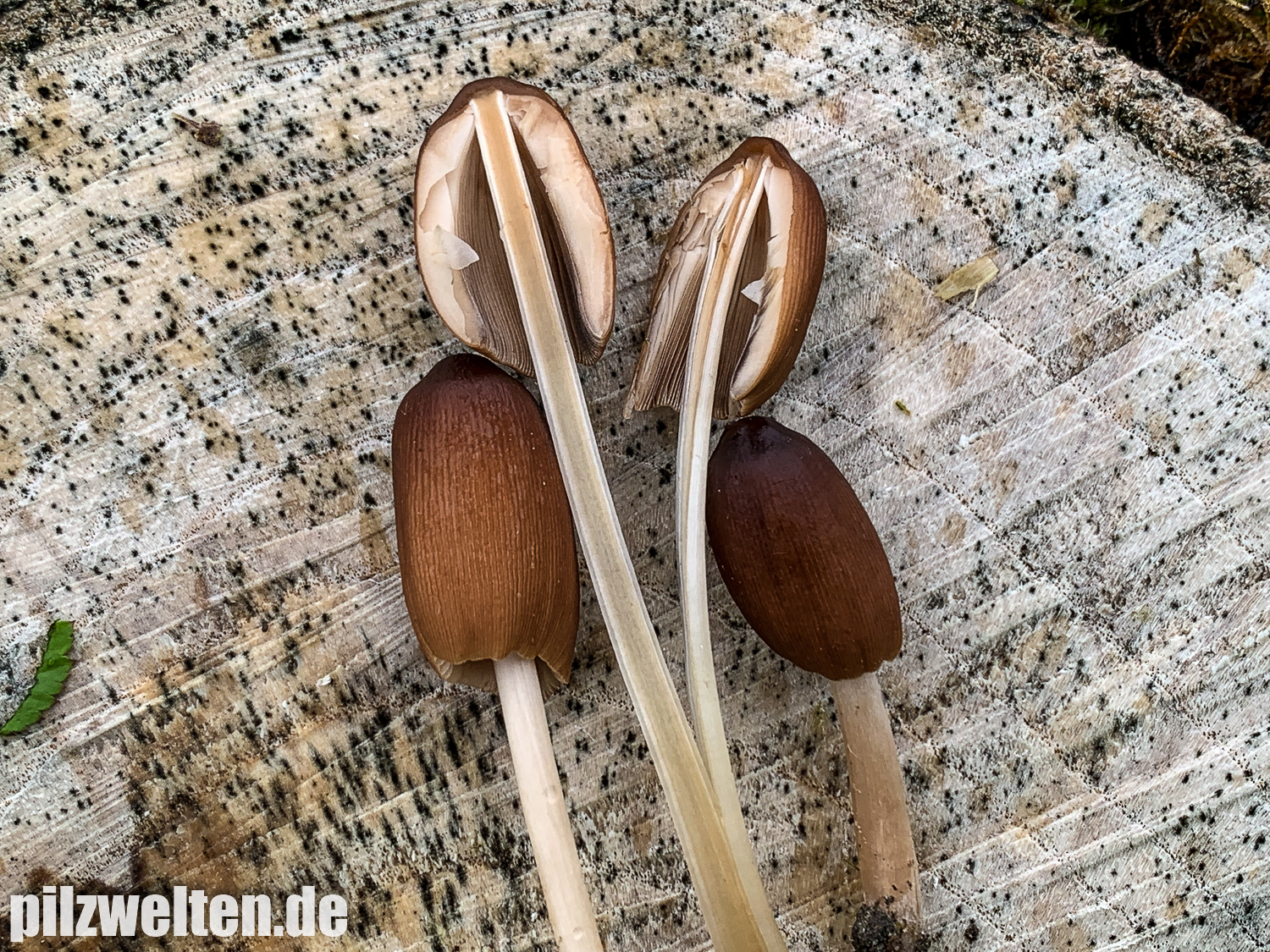 Auf uns machten die älteren Exemplare etwas den Eindruck, als würden sie langsam beginnen sich von den Lamellen her schwarz zu verfärben und ggf. auch aufzulösen. Deswegen dachten wir hier sofort an eine Tintlingsart, aber auch die nähere Suche im Tintlingsumfeld brachte uns auf keine Art die passen könnte.