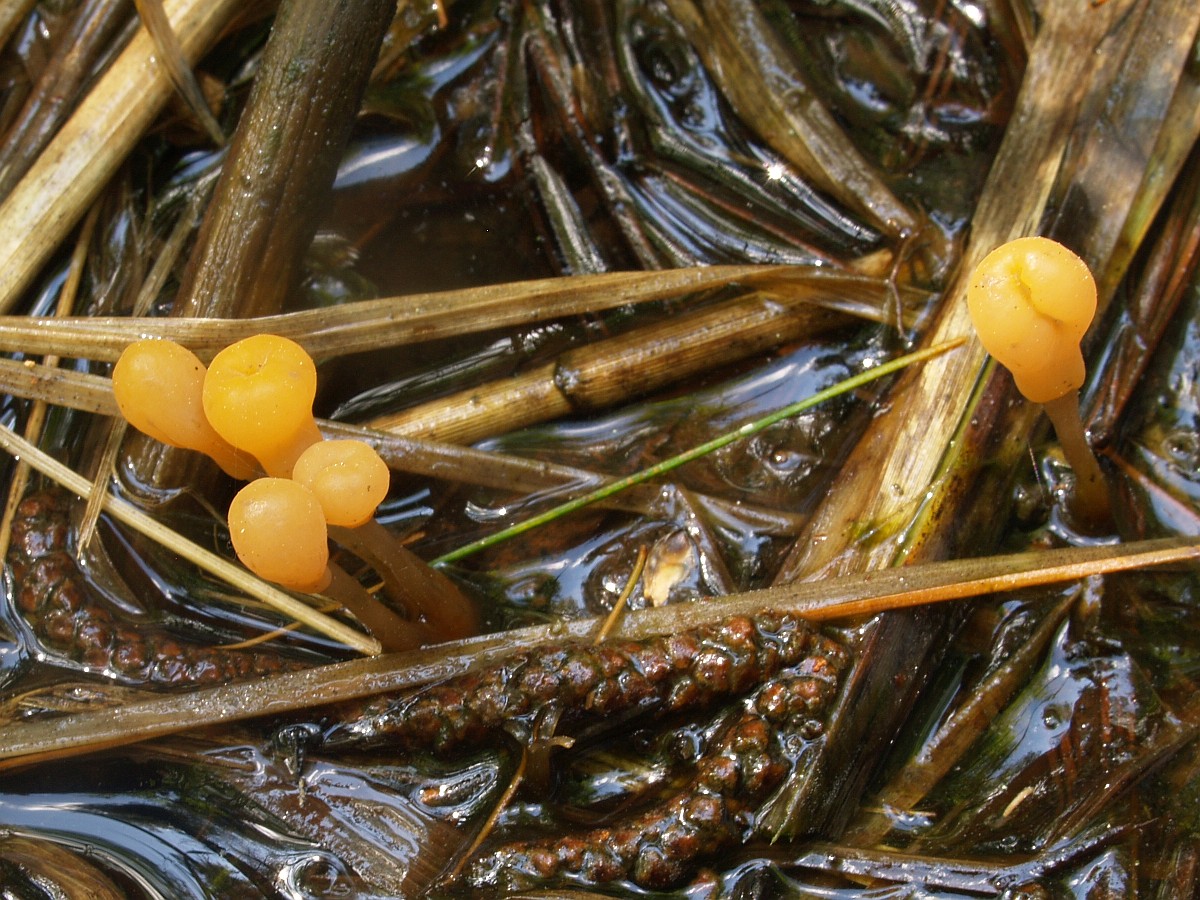 Auf Schritt und Tritt begegnetem einem die Sumpfhaubenpilze (Mitrula paludoa)