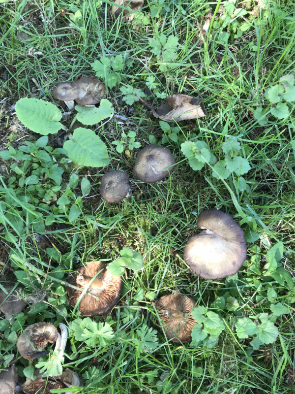 Die Rötlinge sehen aber reichlich lütt und dünnfleischig aus für den Schildrötling (Entoloma clypeatum). Das könnte auch eine Nolanea sein, und damit was aus dem Umkreis um Entoloma vernum (Frühjahrs - Giftrötling).