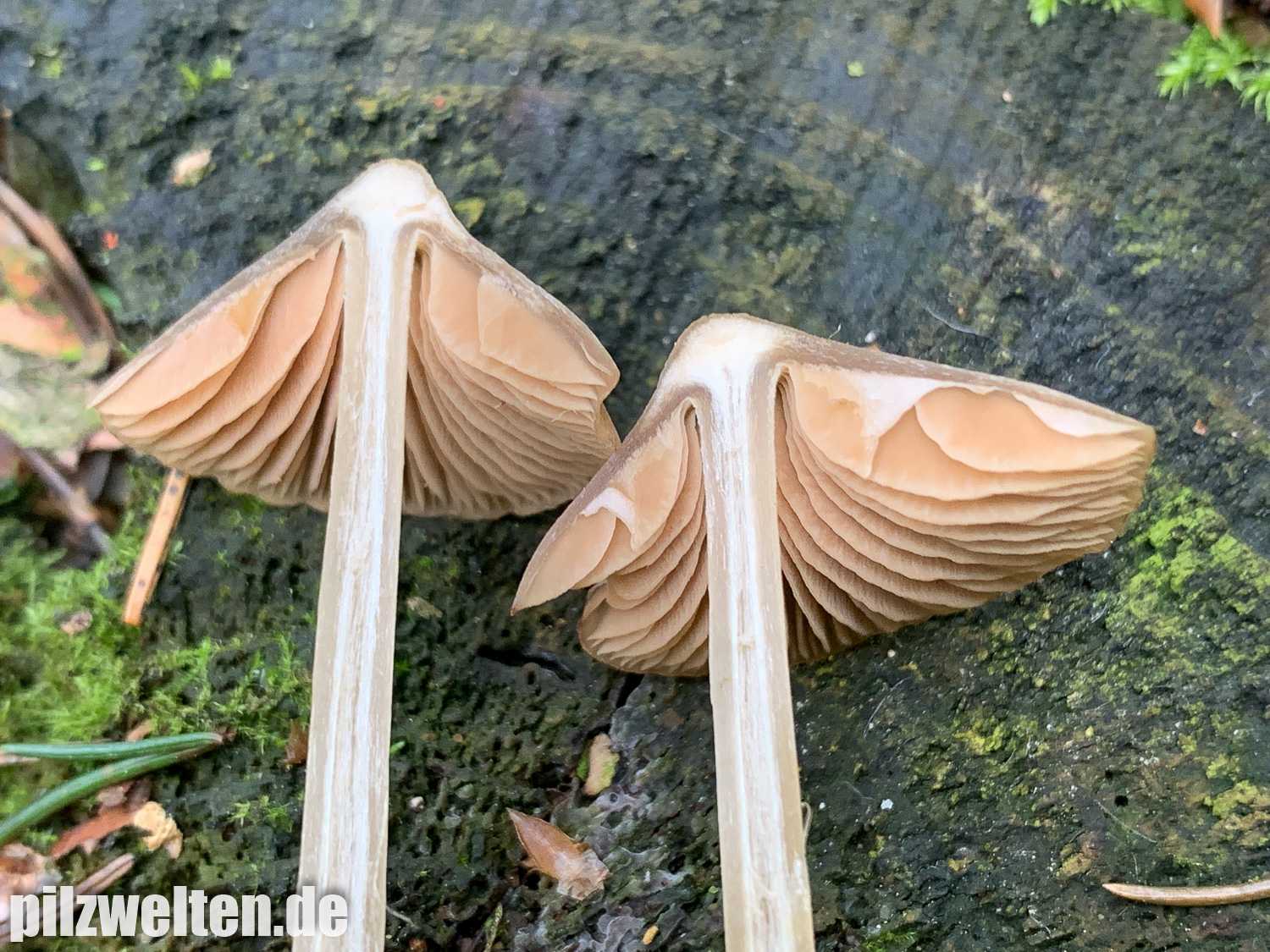 - Besonderheiten: Sehr langstielig, Hut im Alter von der Mitte her ausbleichend und vor allem bei jungen Exemplaren deultich gerieft, Stielbasis Myzelfilzig