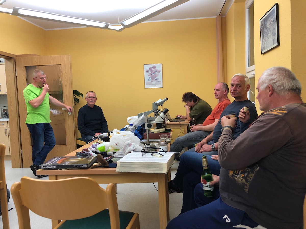 Der Mai hier war lange trocken und winterlich, sodass das Pilzaufkommen nicht berauschend war. Dennoch haben wir mehr Pilze gefunden, als ich erwartet hatte. Wir hatten tatsächlich bis spät abends reichlich Pilze zum Auswerten. Der Tagungsort war in Schmiedefeld bei Piesau.