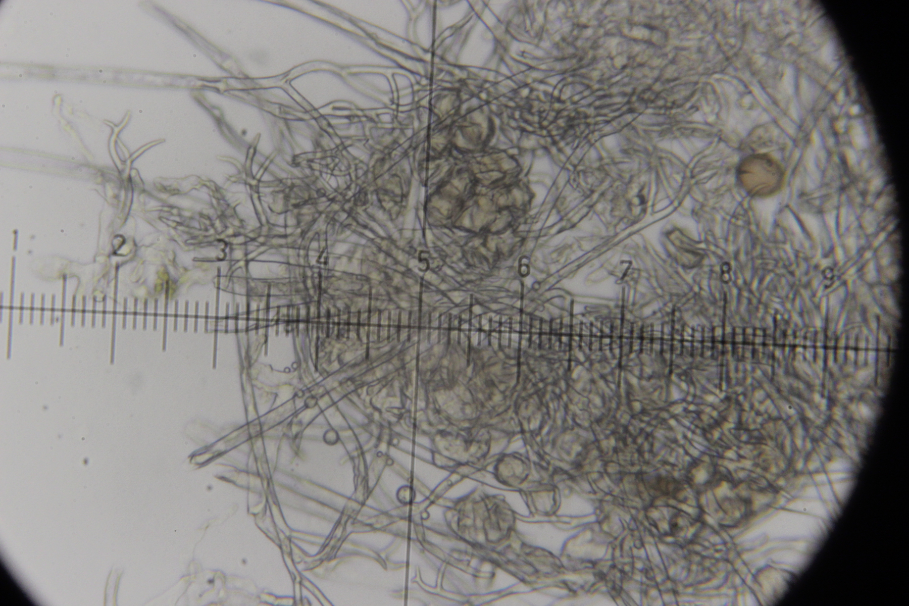 Aber nun zu den Pilzen. Am Samstag Vormittag ging es zu einer ersten Exkursion nach draußen. Nach 5 Metern zeigten sich schon die ersten Pilze auf Giersch. Von da an zogen wir langsam aber stetig weiter und schafften bis zum Mittag eine Strecke von einigen Hundert Metern.