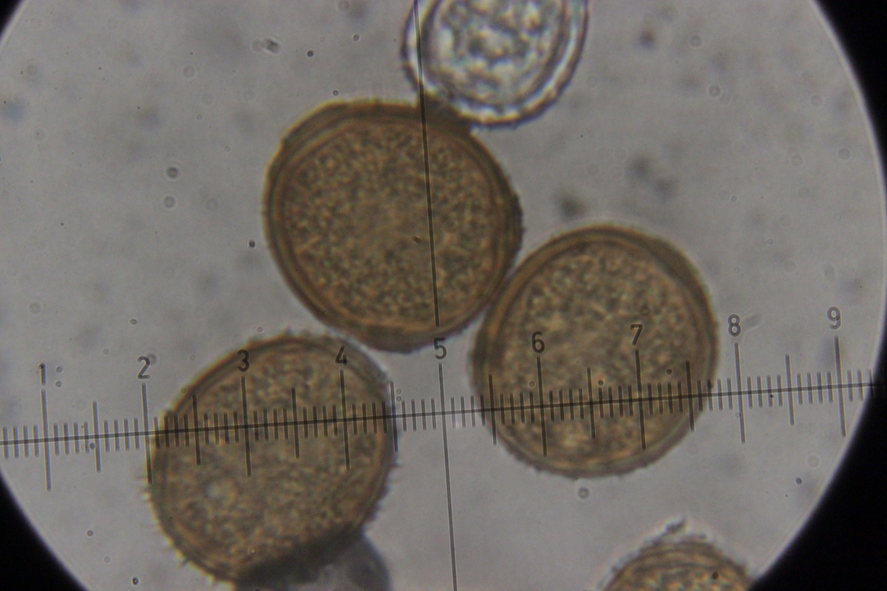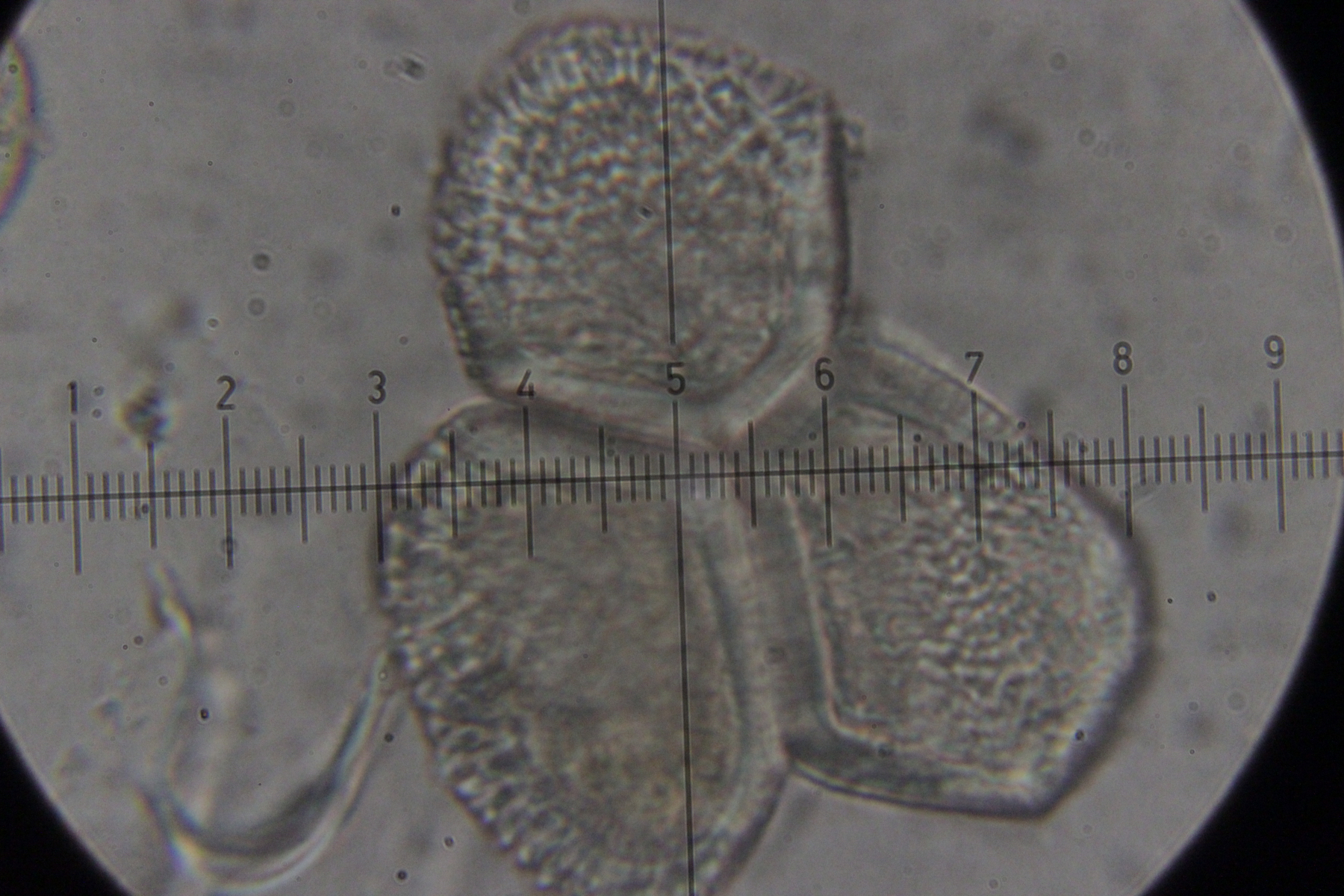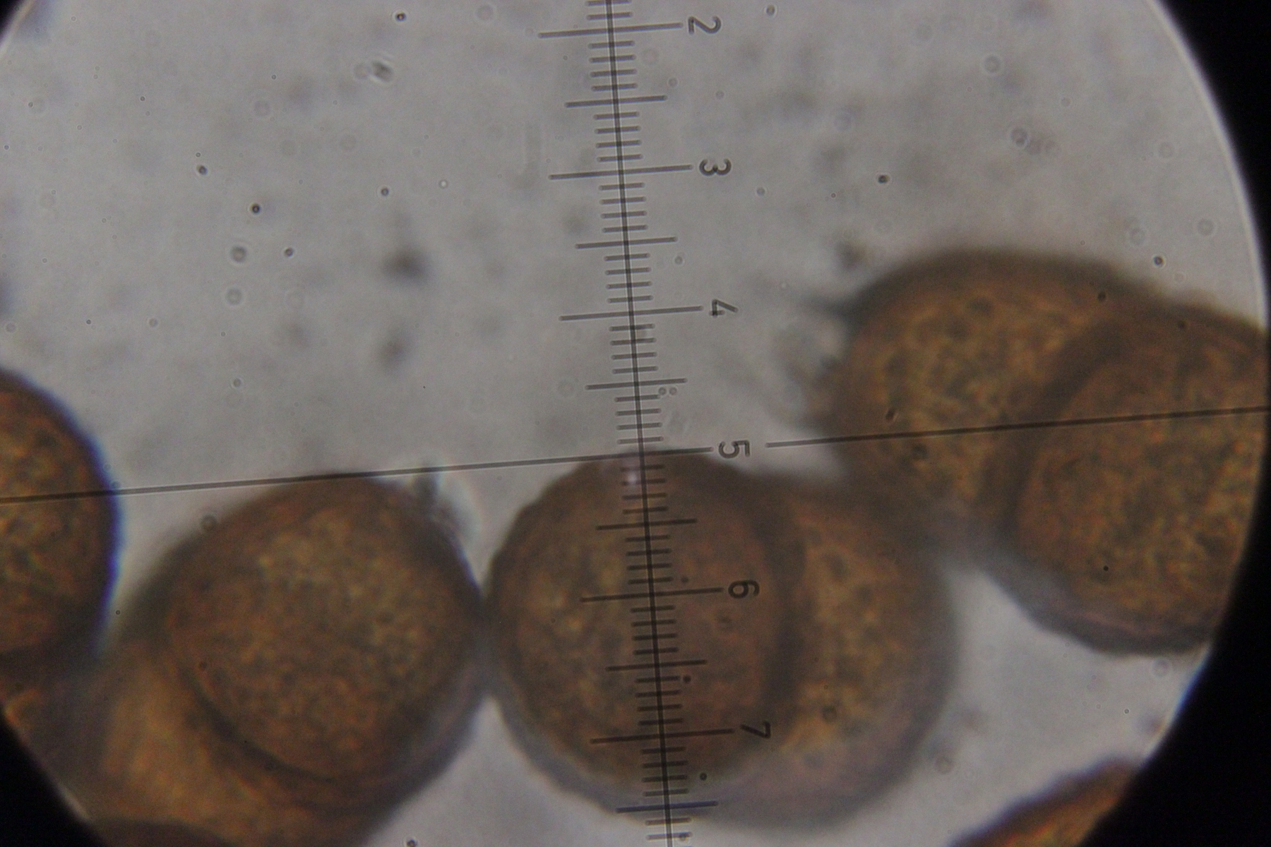 6. Peronospora sp. auf Vicia tetrasperma. Das spec. gibt es hier nicht etwa, weil wir den Pilz nicht hätten bestimmen können. Vielmehr handelt es sich hier um eine noch unbeschriebene Art, die sich von Peronospora ervi auf Vicia hirsuta molekulargenetisch unterscheidet..