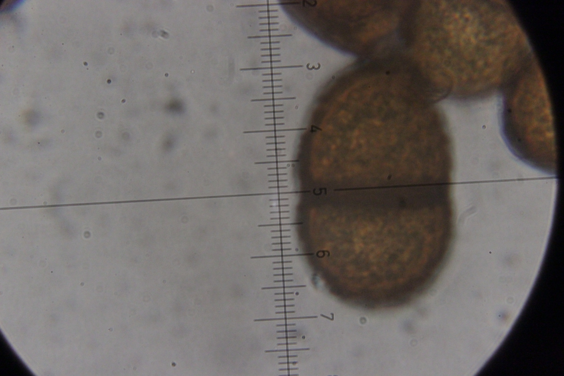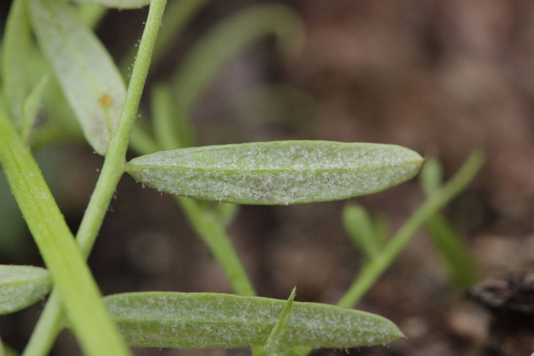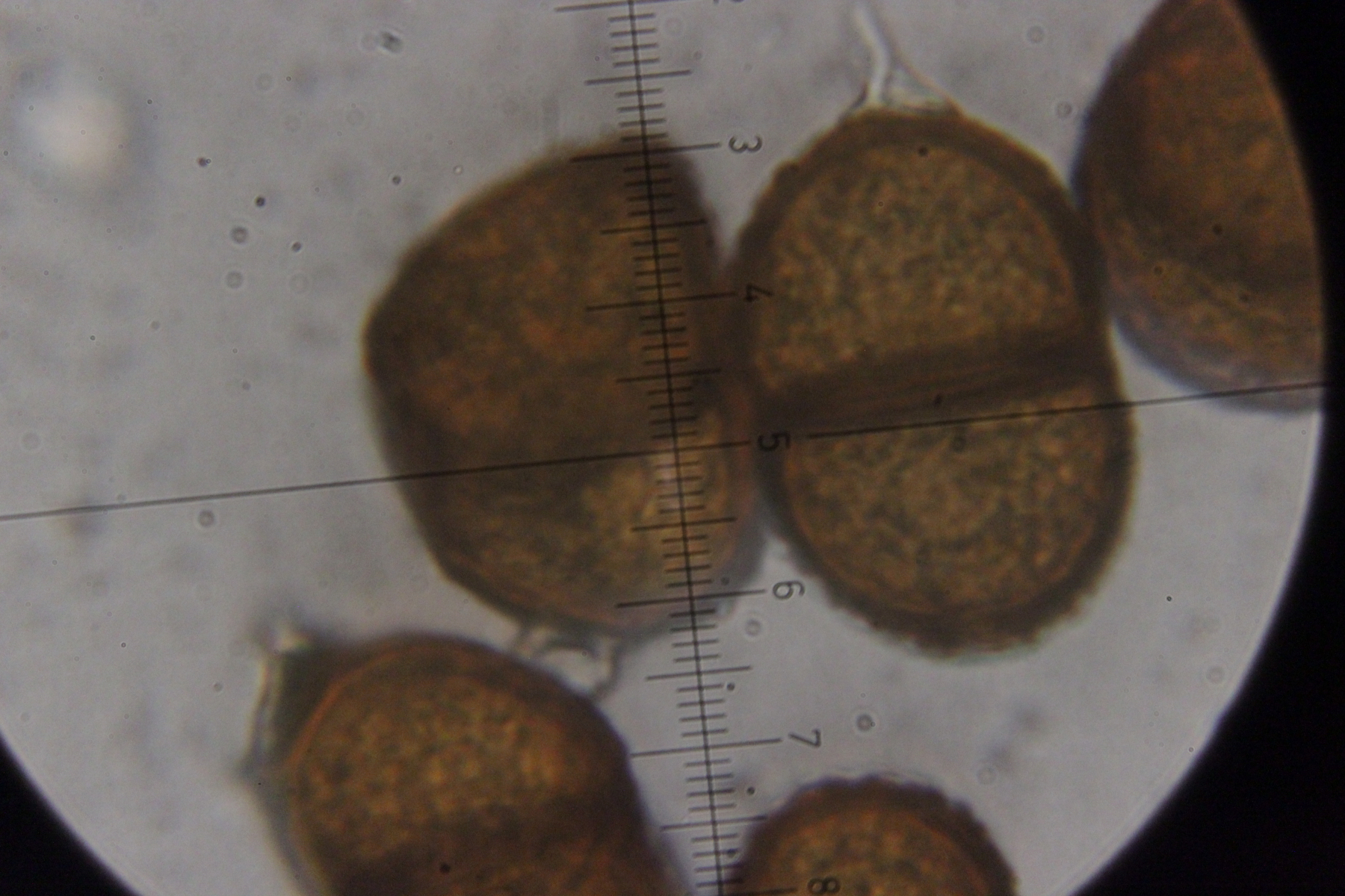 6. Peronospora sp. auf Vicia tetrasperma. Das spec. gibt es hier nicht etwa, weil wir den Pilz nicht hätten bestimmen können. Vielmehr handelt es sich hier um eine noch unbeschriebene Art, die sich von Peronospora ervi auf Vicia hirsuta molekulargenetisch unterscheidet..