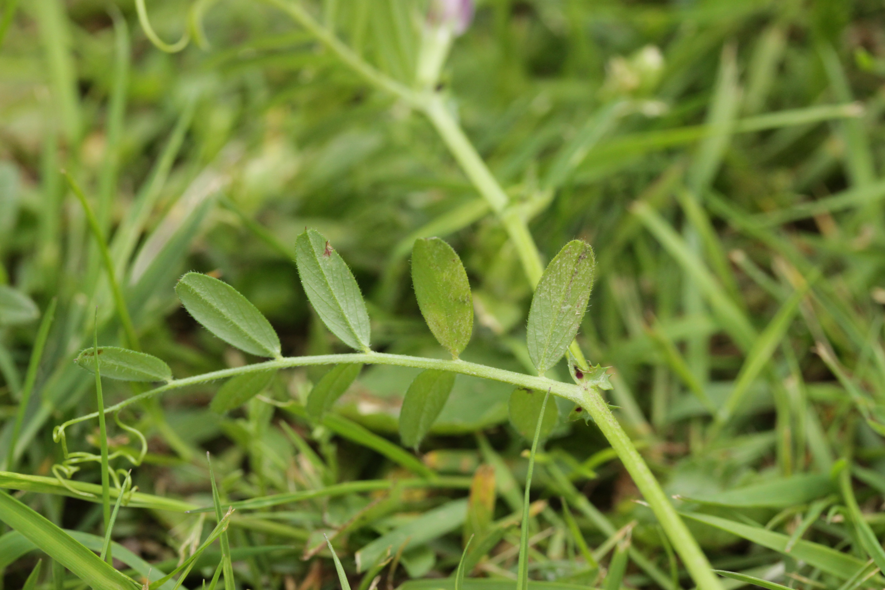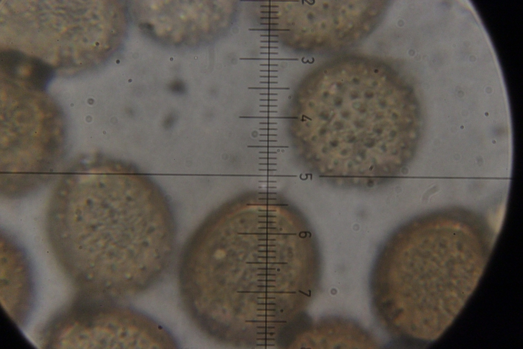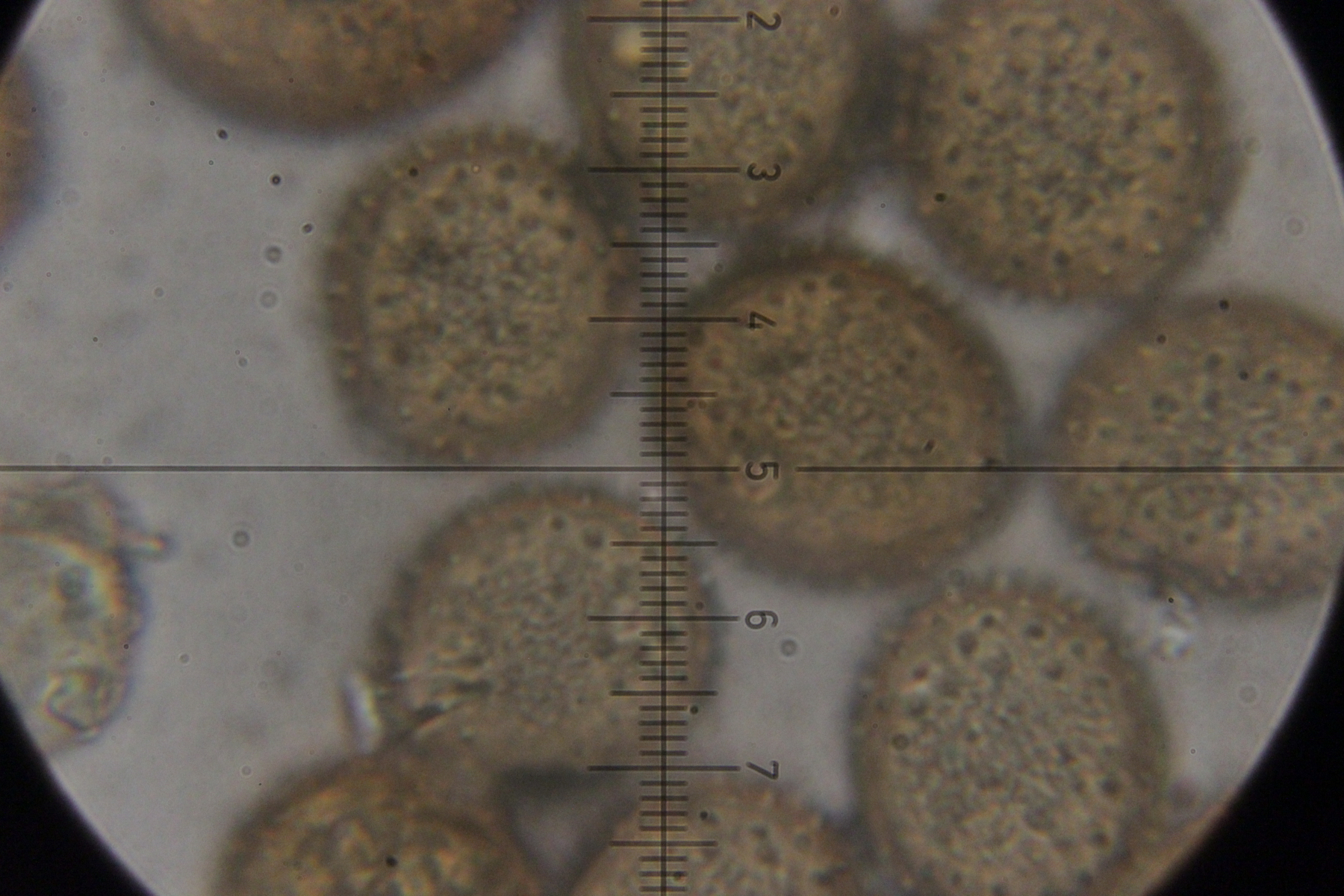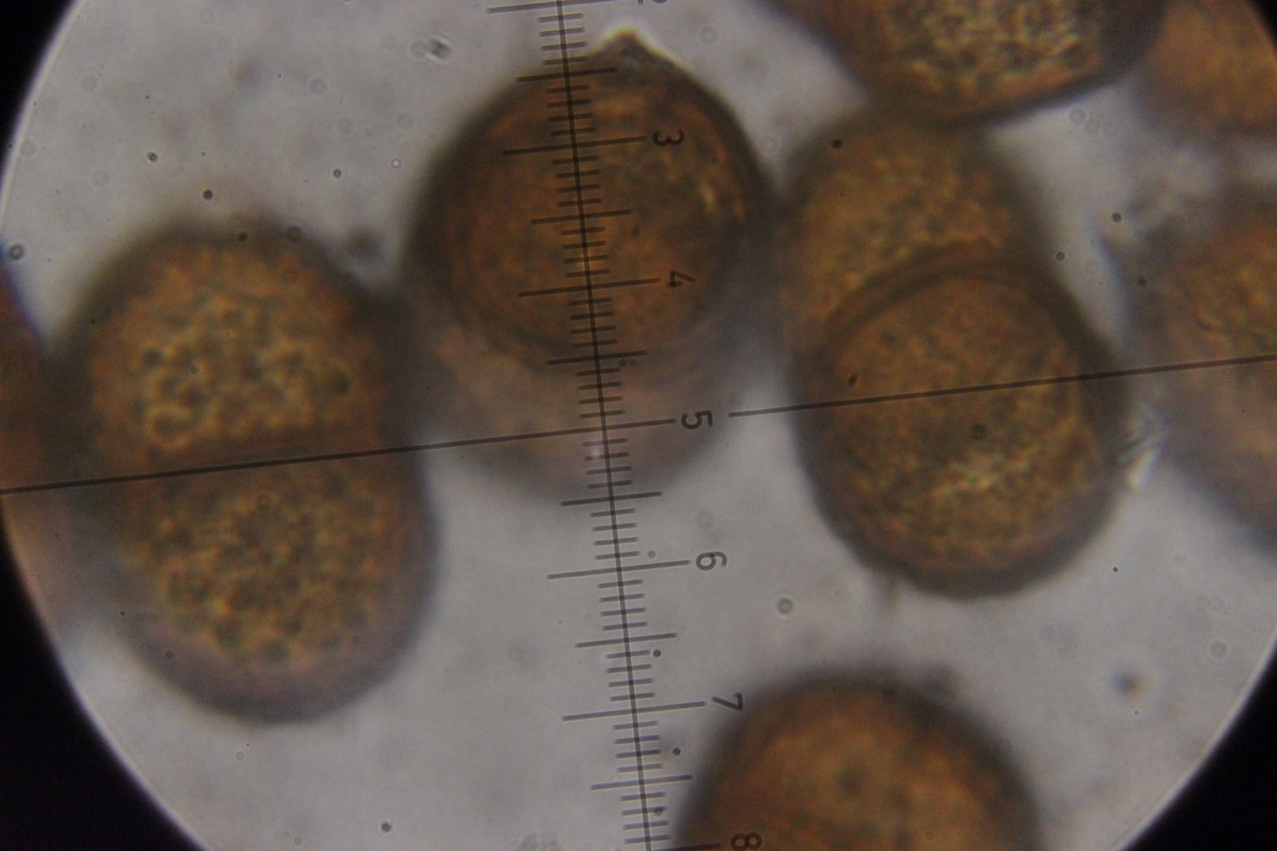 6. Peronospora sp. auf Vicia tetrasperma. Das spec. gibt es hier nicht etwa, weil wir den Pilz nicht hätten bestimmen können. Vielmehr handelt es sich hier um eine noch unbeschriebene Art, die sich von Peronospora ervi auf Vicia hirsuta molekulargenetisch unterscheidet..