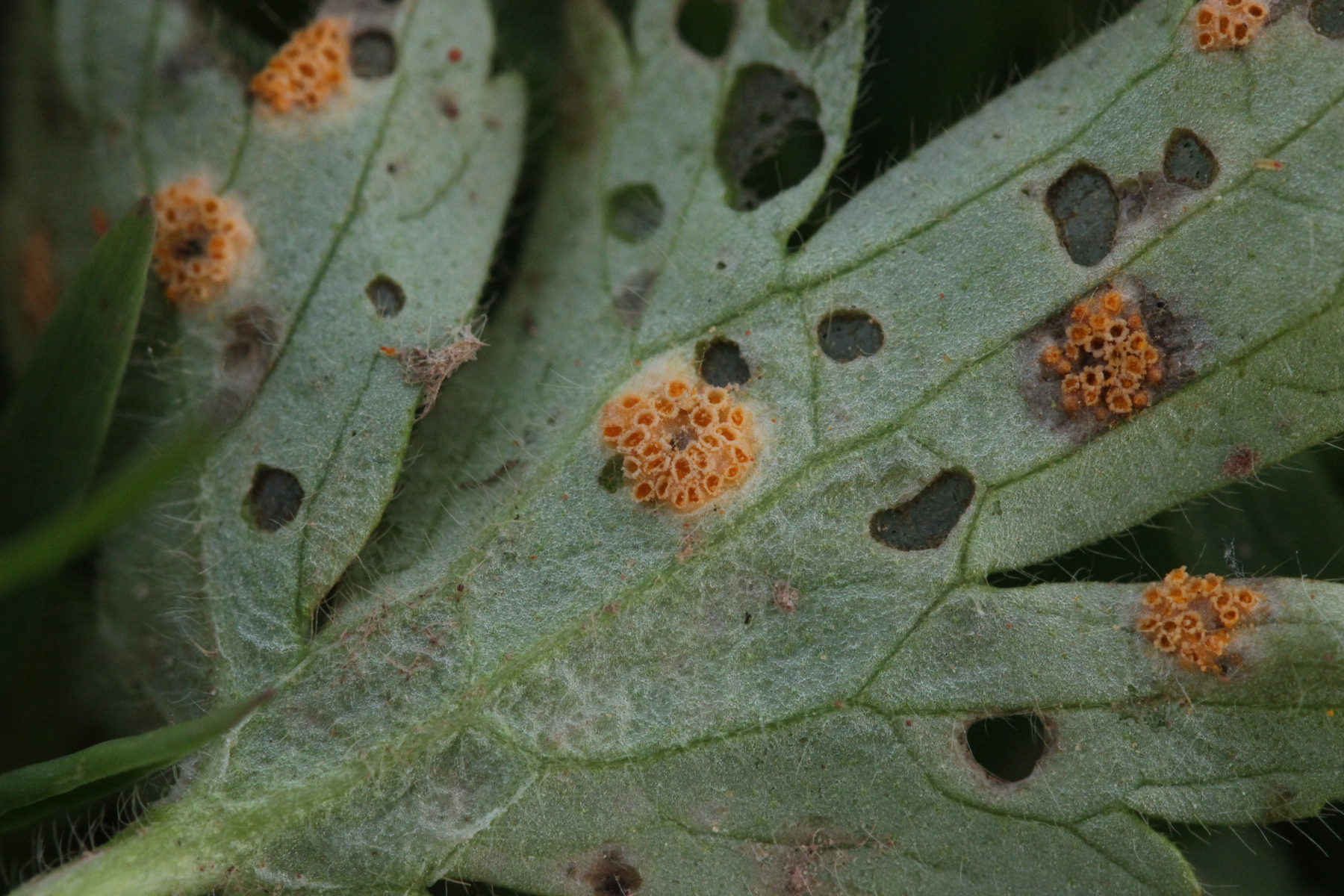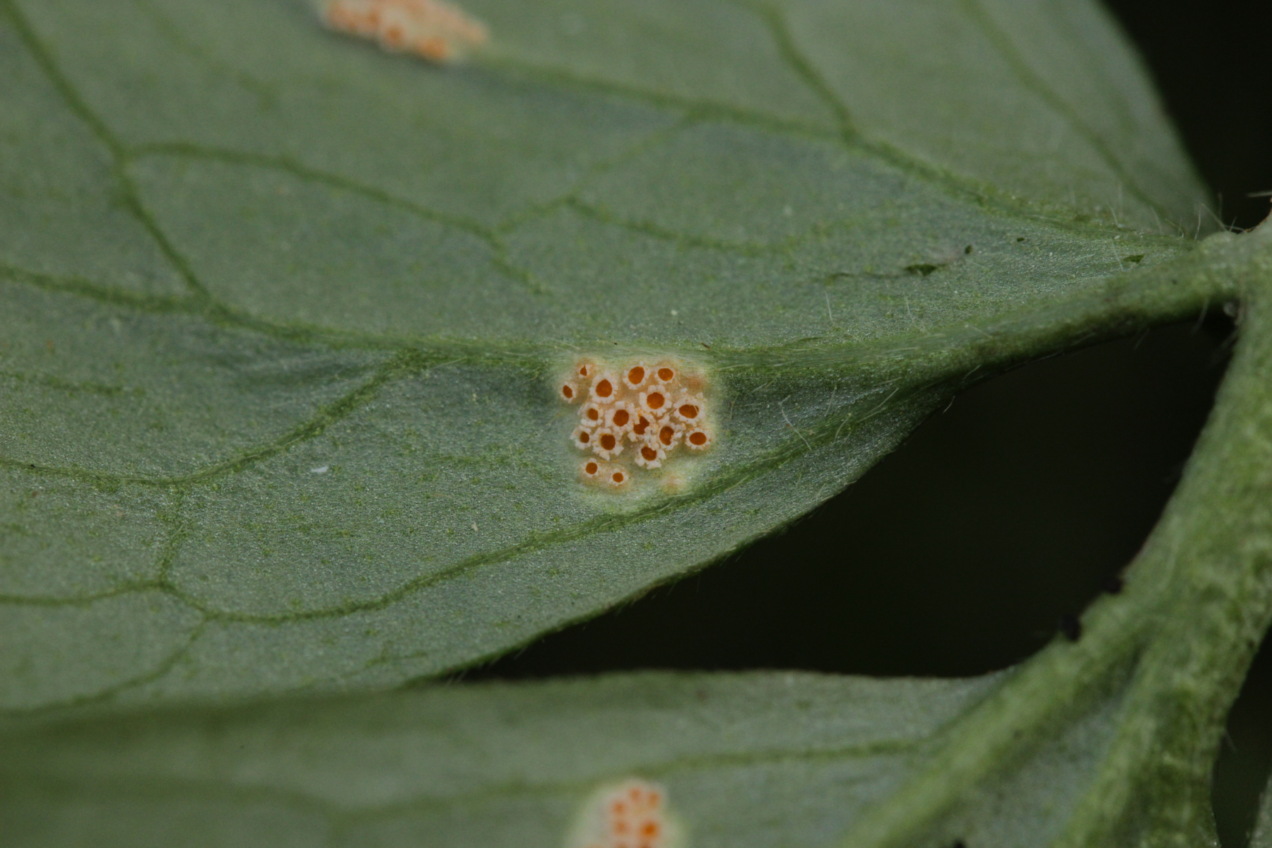 7. Aecidium ranunculi-acris agg. auf Ranunculus repens. Im Prinzip sollte man hier mit dem Mikroskop auch noch weiter zur genauen Art kommen, aber da traue ich mir keine belastbare Aussage zu. Vielleicht liefert Jule dazu noch einen Namen.