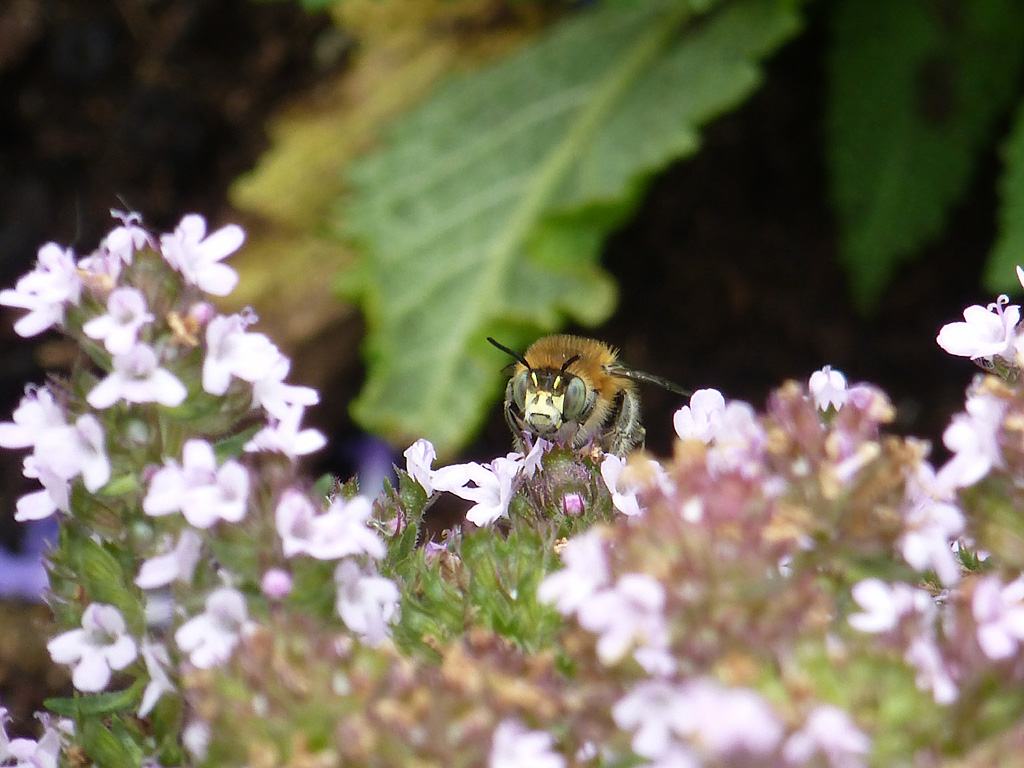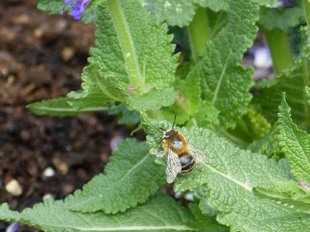 Es gibt auch weniger friedliche Besucher - diese kleine Biene vertreibt alle anderen von den Blumen... (ich denke, es ist