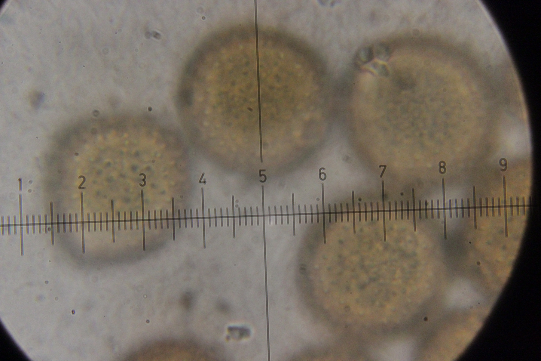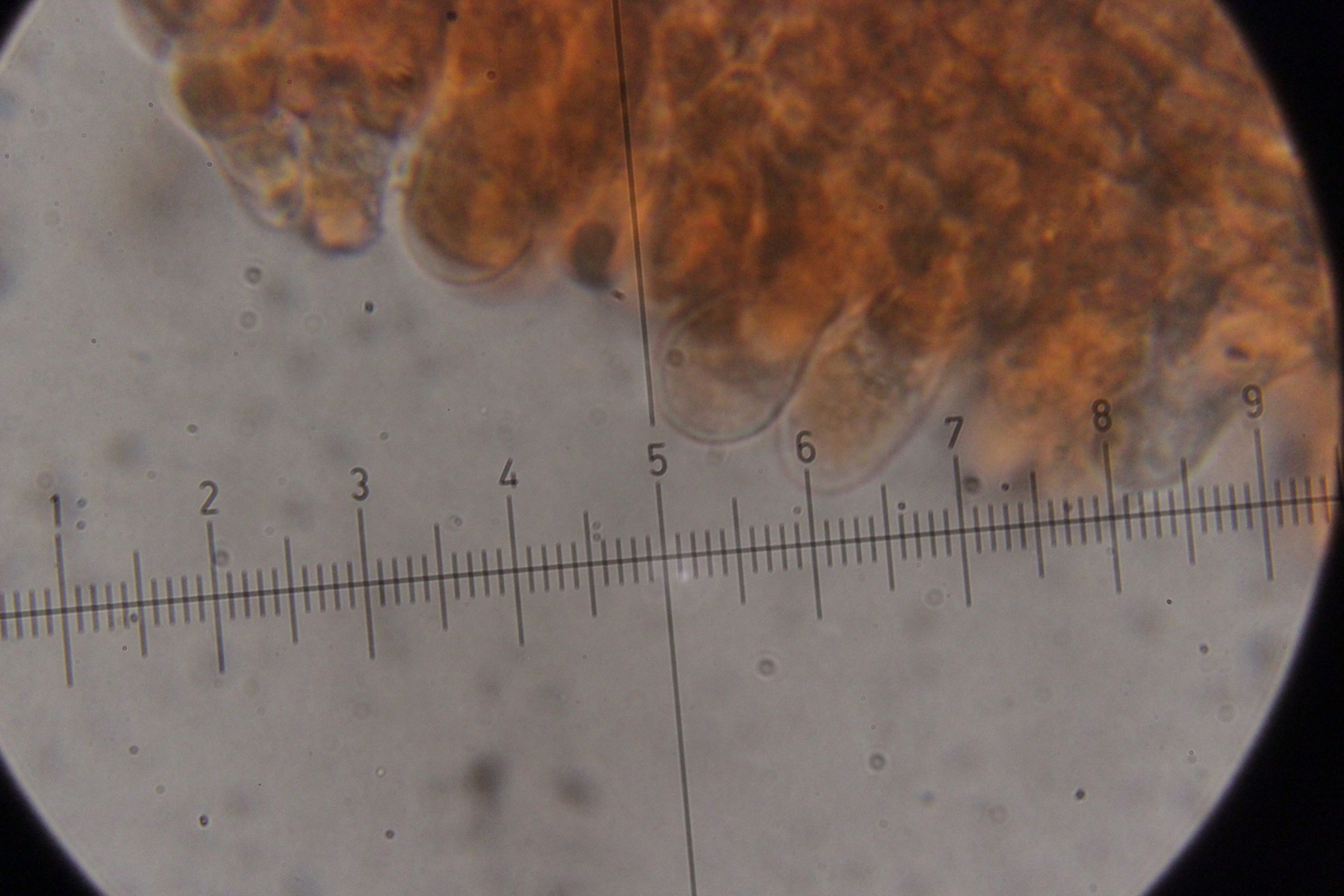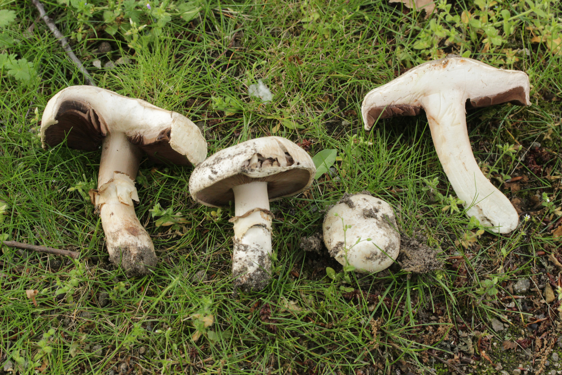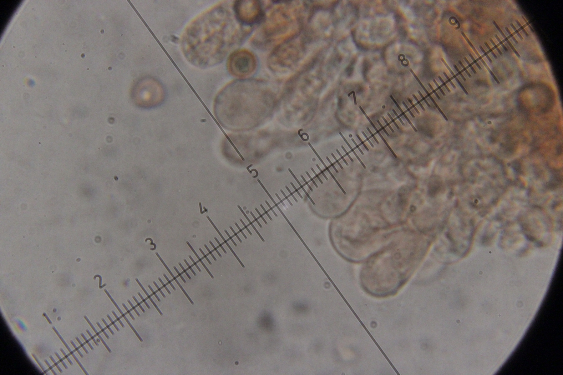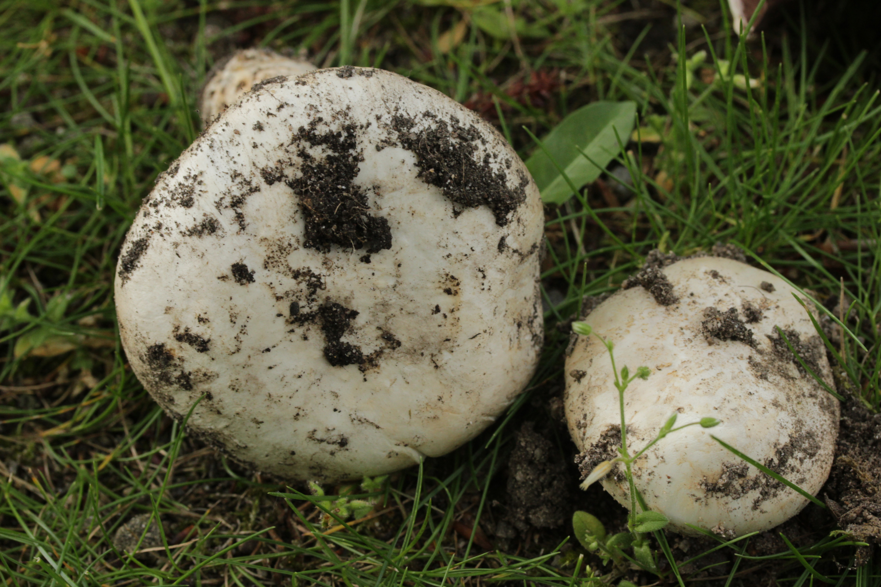 1. Zunächst mal ein Agaricus sp. mit Sporengröße (5.65 +- 0.4) µm x (4.5 +- 0.2) µm, pilzigem Geruch, doppeltem Ring und einer nur sehr langsamen und geringen Verfärbung des Fleisches in Bräunliche beim Durchschneiden. Insgesamt ein sehr fester Pilz. Karl hat in der Zwischenzeit auf FB A. bitorquis als heißen Kandidaten genannt.