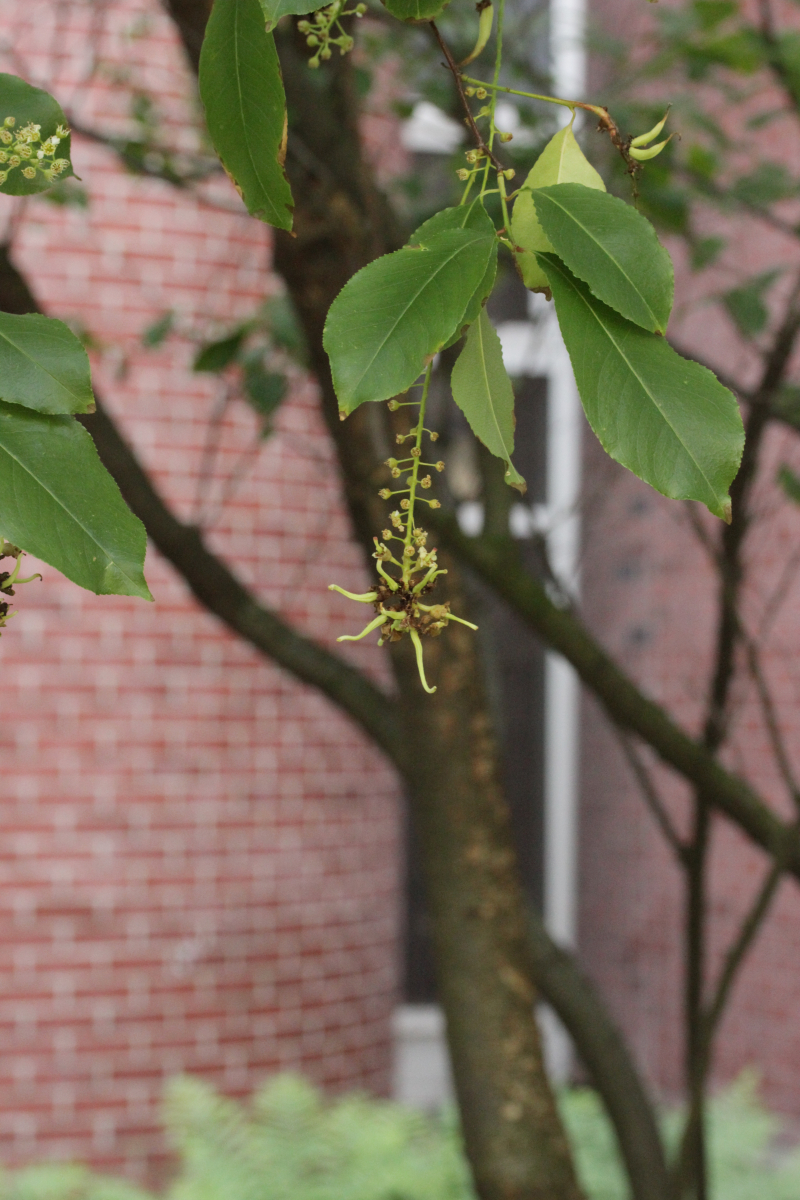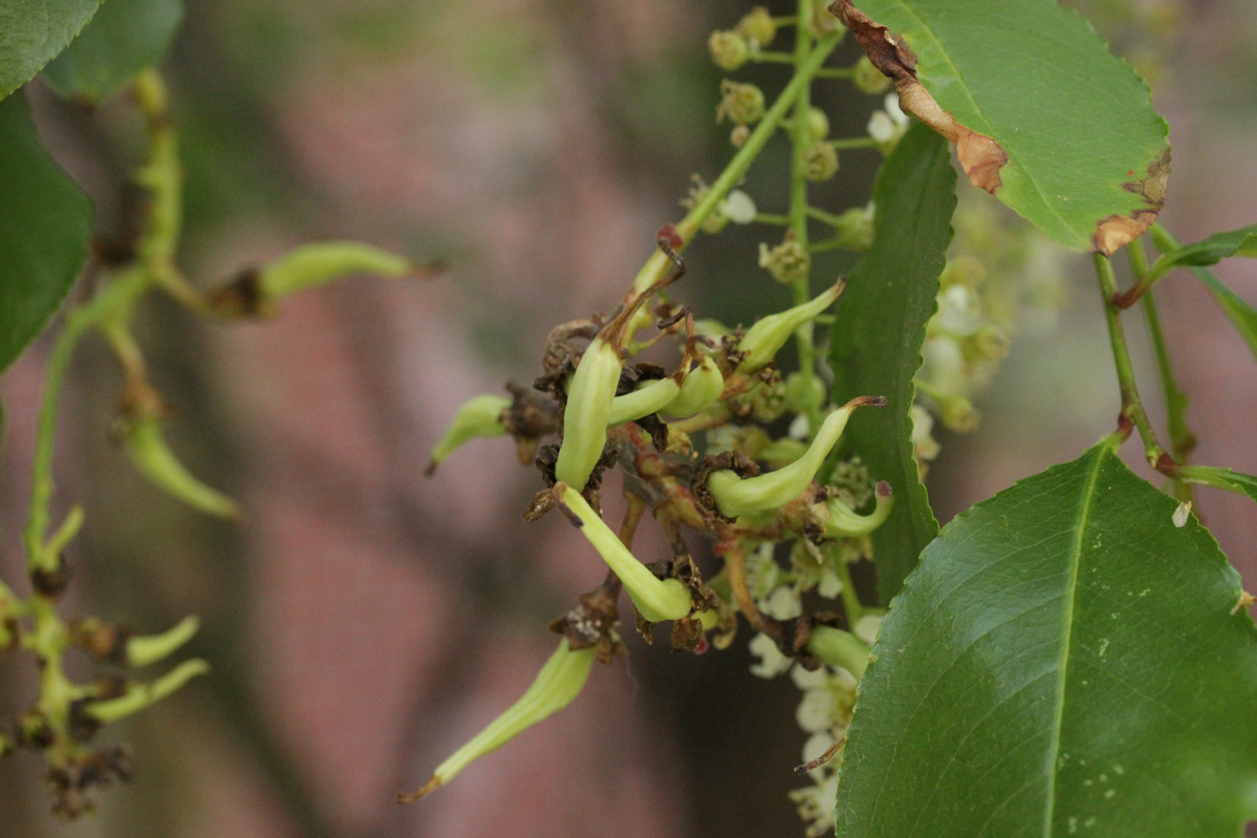 4. Eine Taphrina auf Prunus serotina. Das müßte dann T. farlowii sein, wobei die normalerweise nur Blätter befällt und nicht derartige Narrentaschen an den Früchten verursacht.
