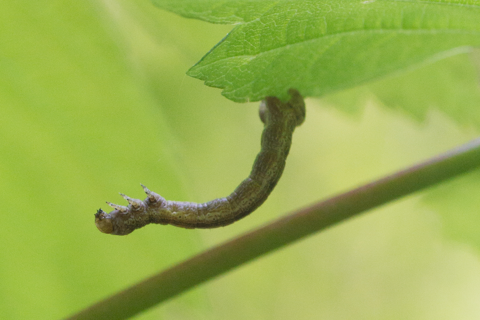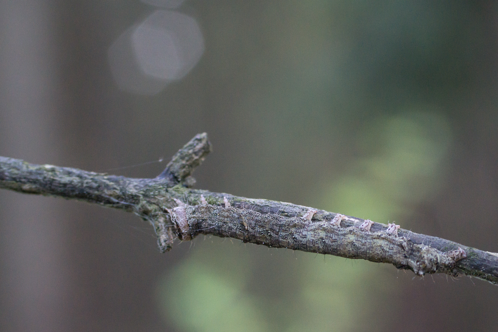 9. Vermutlich die Raupe der Weißdorneule: