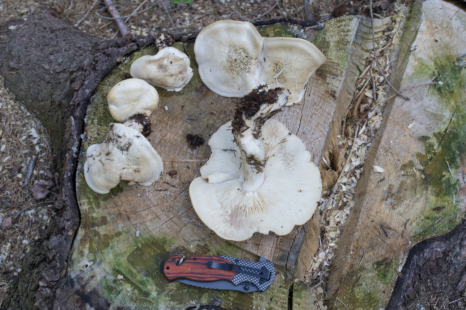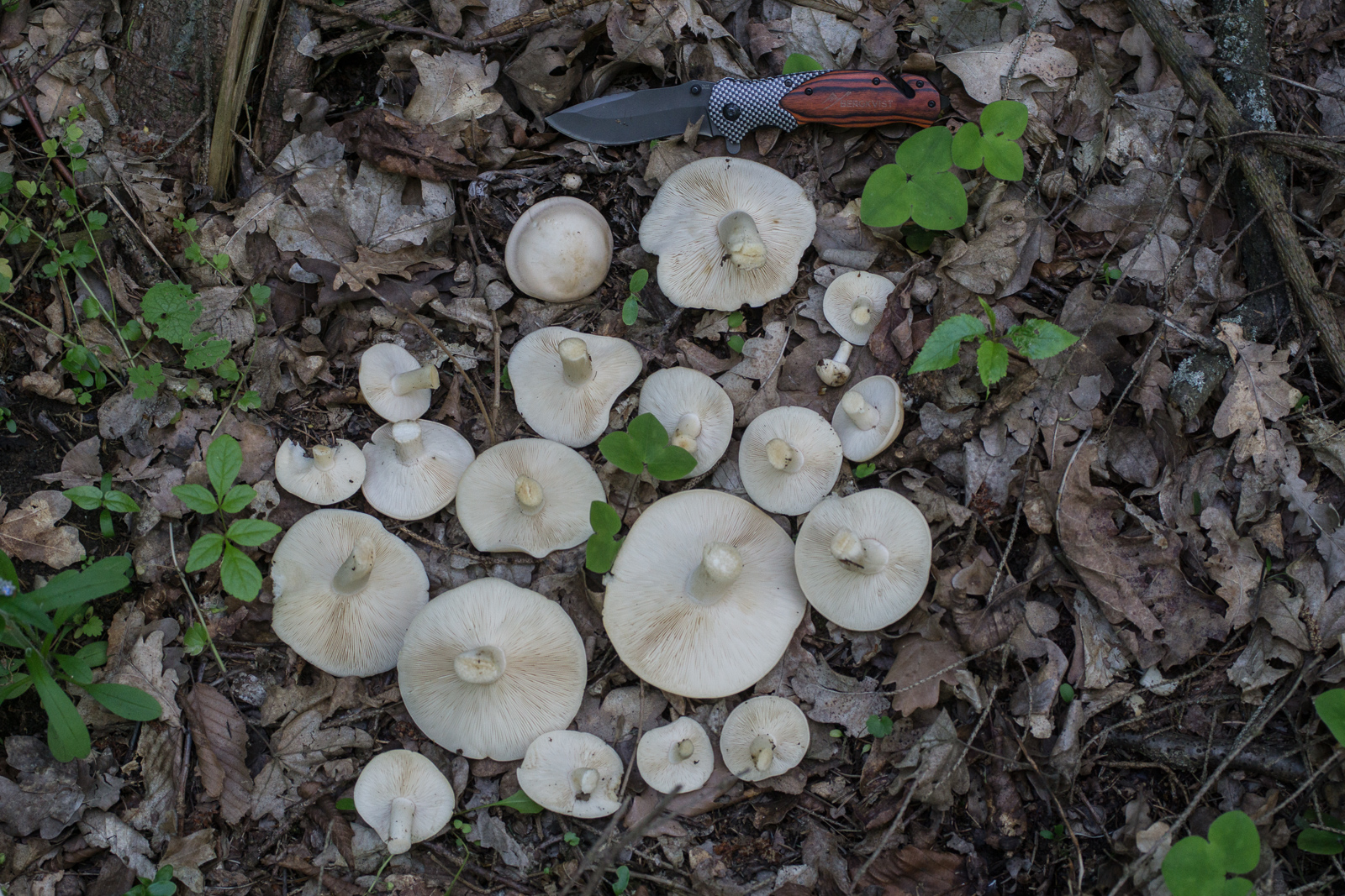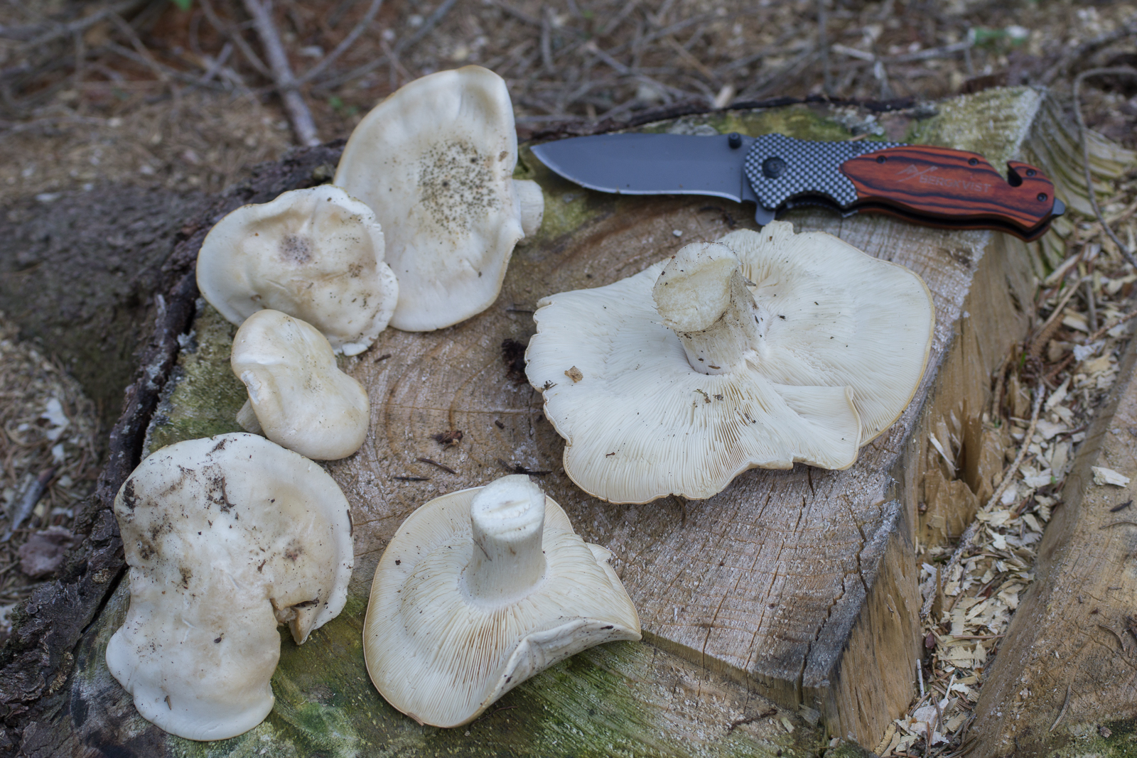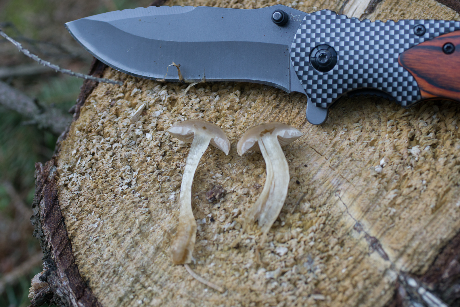 4. Die oberen beiden verfärbten blieben im Wald. Die können auf jeden Fall ordentlich groß werden. Das Messer hat ca. 12cm Länge.