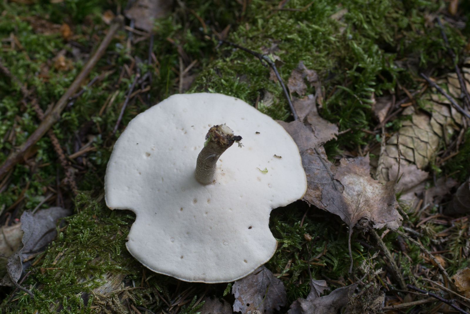 18. Und der letzte. Von dem habe ich zum Schluss auch noch einen mitgenommen. Sehr häufig zu finden im Fichtenwald. Jung braun, speckige Huthaut. Im Alter ausblassend. Weiße Myzelfäden an der Basis. Sporenpulver weiß.