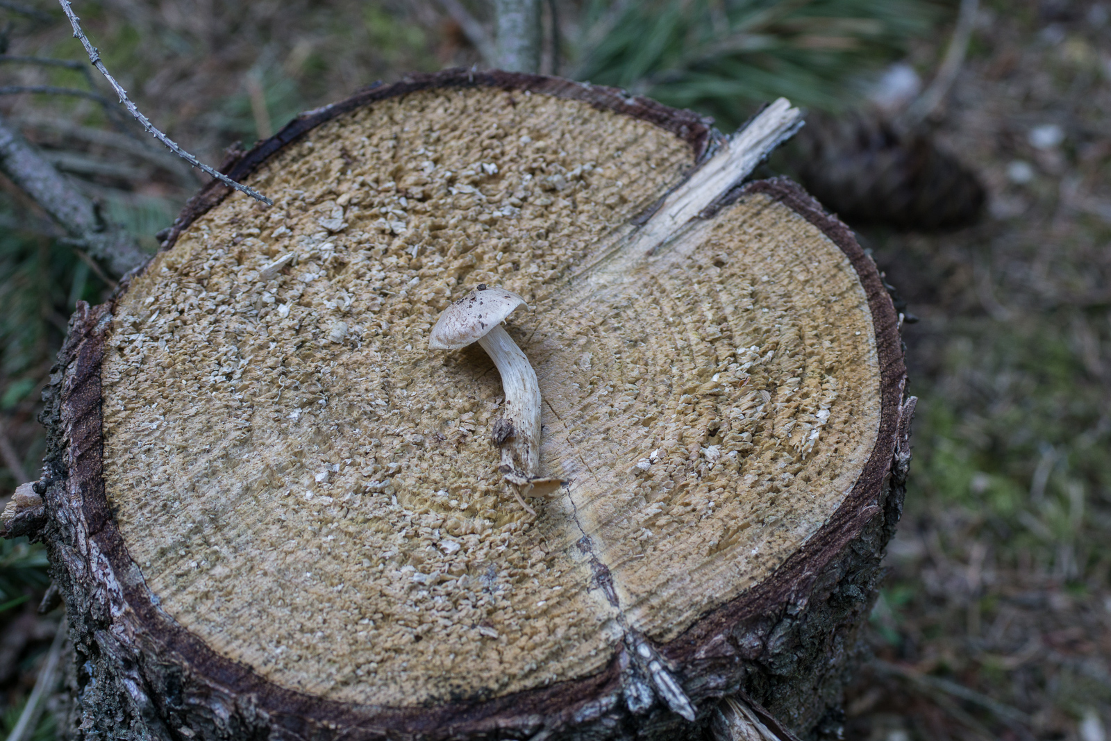 17. Mit dem kann ich auch nicht so viel anfangen. Er wuchs direkt neben dem Baumstumpf alleine. Habe ihn leider nicht ganz rausbekommen. Geruch stark nach Rettich. Fälbling? Vielleicht der Tonblasse? Gefällt mir aber nicht so richtig irgendwie.