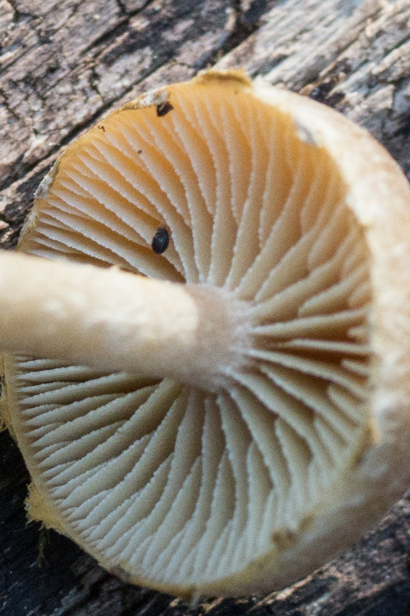 16: Sieht echt lustig aus mit den breit angewachsenen, fast kurz herablaufenden Lamellen. Das jedenfalls passt nicht recht zu Psathyrella. Ein Sporenabwurf wäre da in der Tat ein wichtiger, erster Schritt.