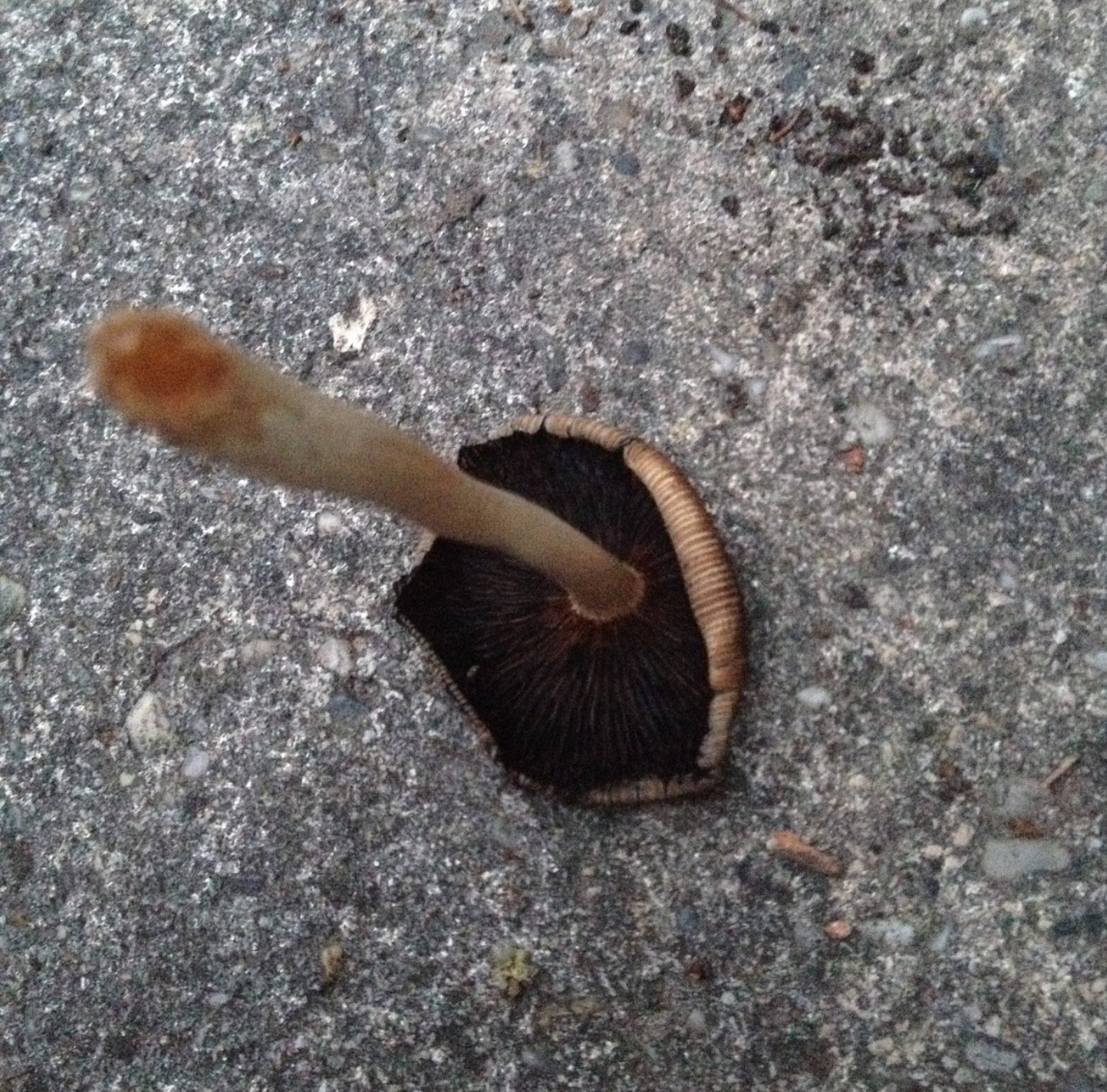 Der Pilz ist hell-braun gefärbt. Die Lamellen sind schwarz. Der Geruch hat eine leicht erdige Note. Gewachsen ist der Pilz direkt nach den heftigen Regenfällen der letzten Tage.