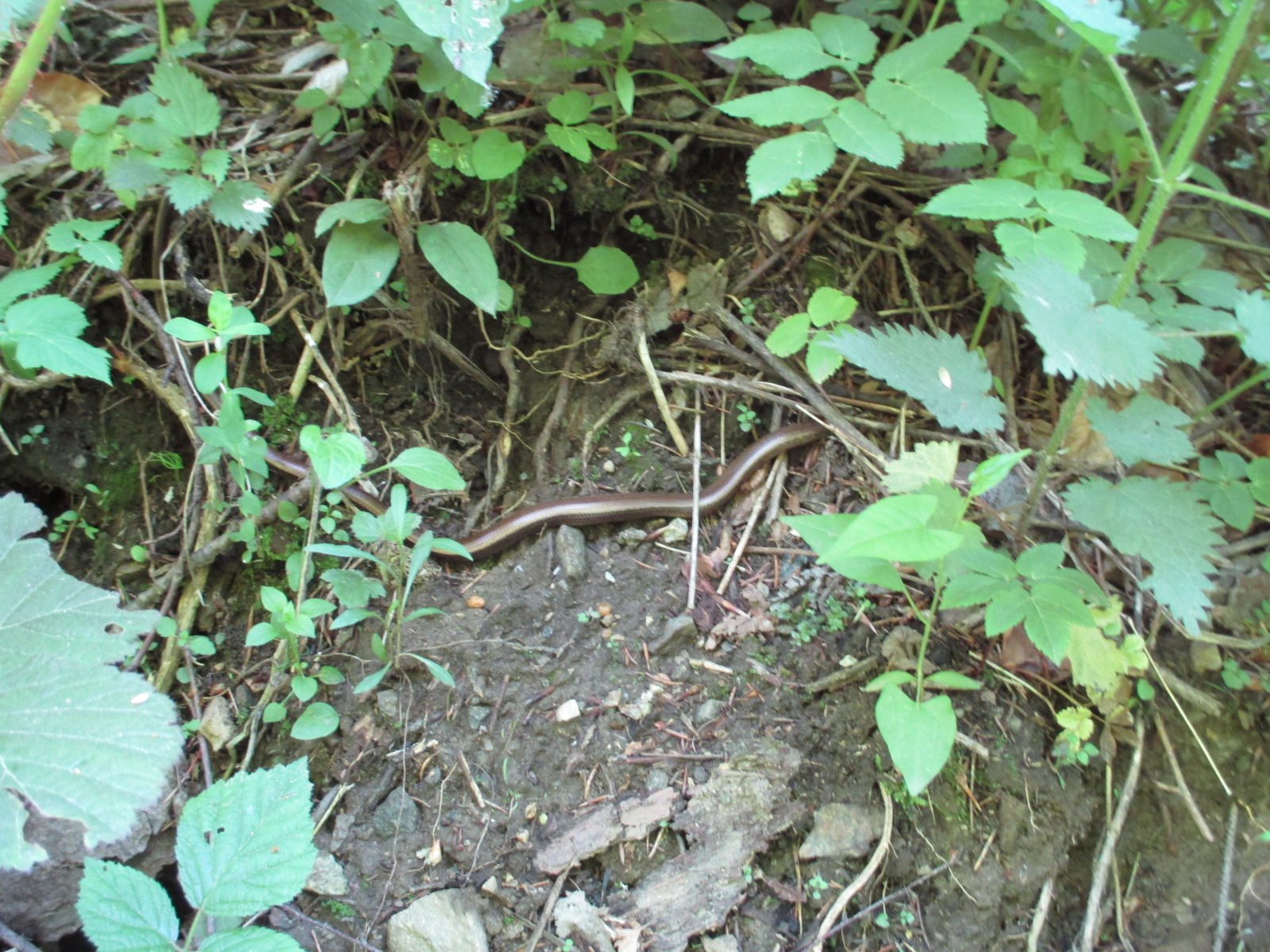 entweder es war eine lange Blindschleiche oder eine junge Ringelnatter. Leider zeigte sie mir ihren Kopf nicht um sie zu bestimmen.