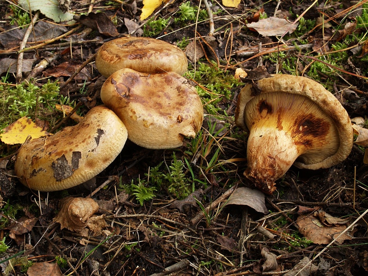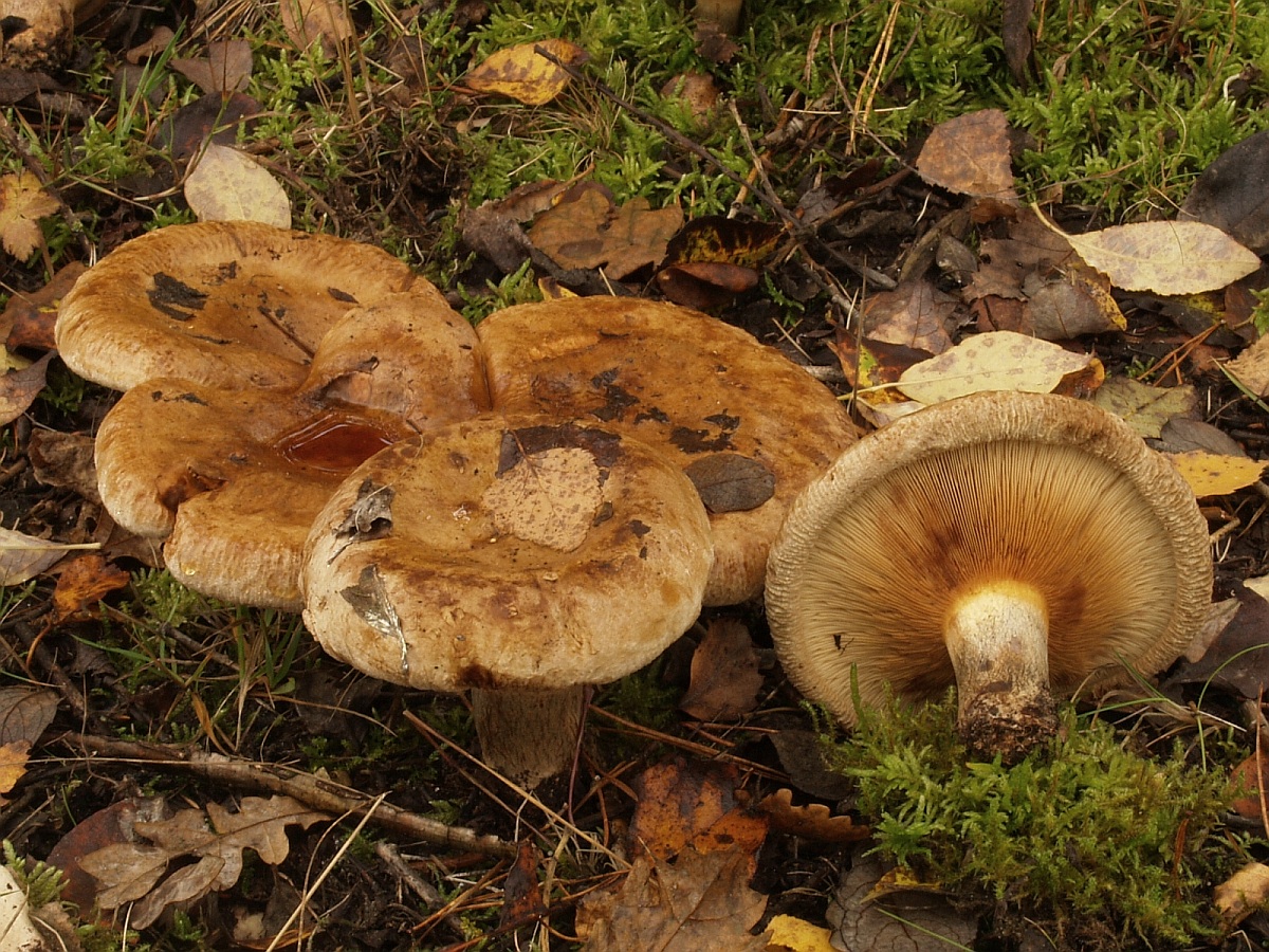 Paxillus validus: ockerlich rostbraun (teils mit etwas oliv)