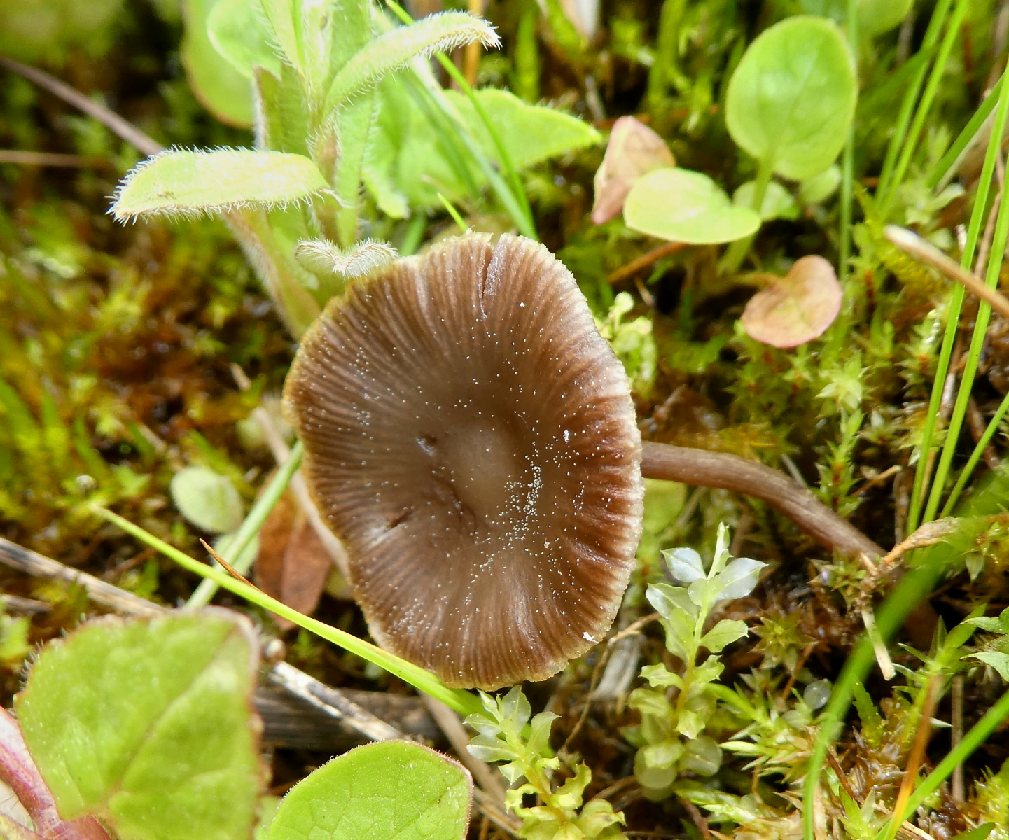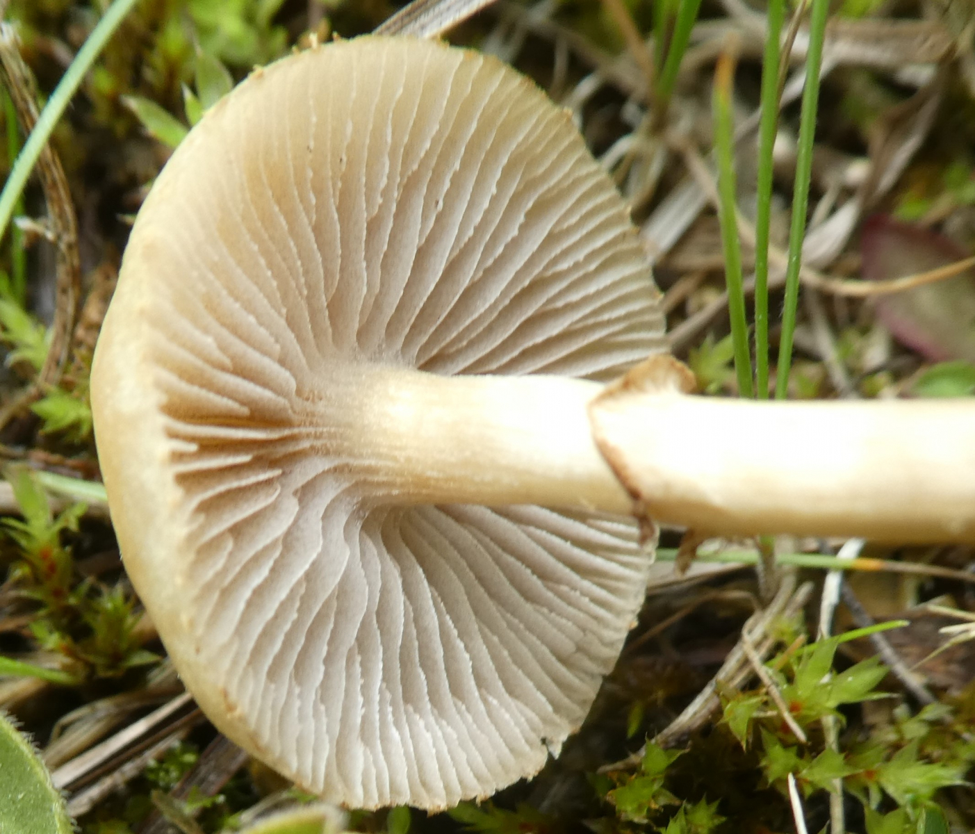 Hut-Durchmesser ca. 2 bis 2,5 cm. Gestern kein Geruch feststellbar, heute rieche ich ganz leicht etwas, aber was, kann ich nicht sagen. Die Fotos stammen von verschiedenen Pilzen die ich verstreut auf der Moor-Wiese sah, aber ich denke, dies müssten die selben Pilze sein.