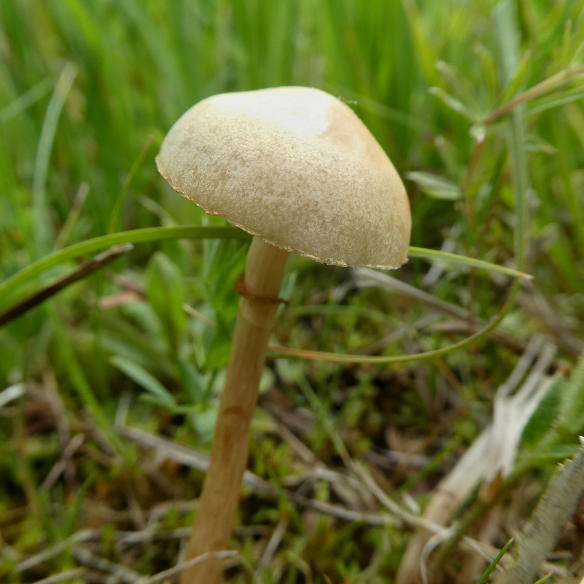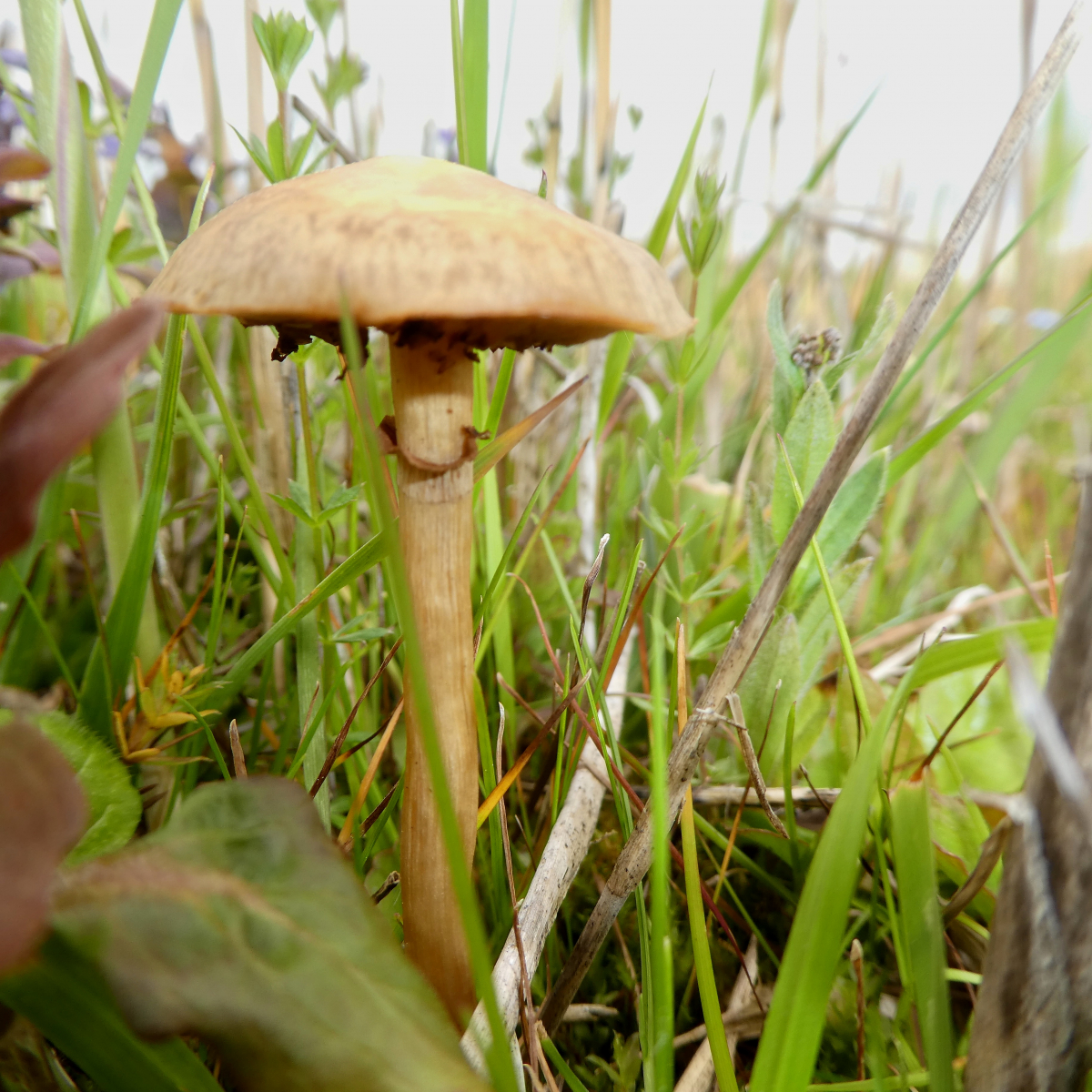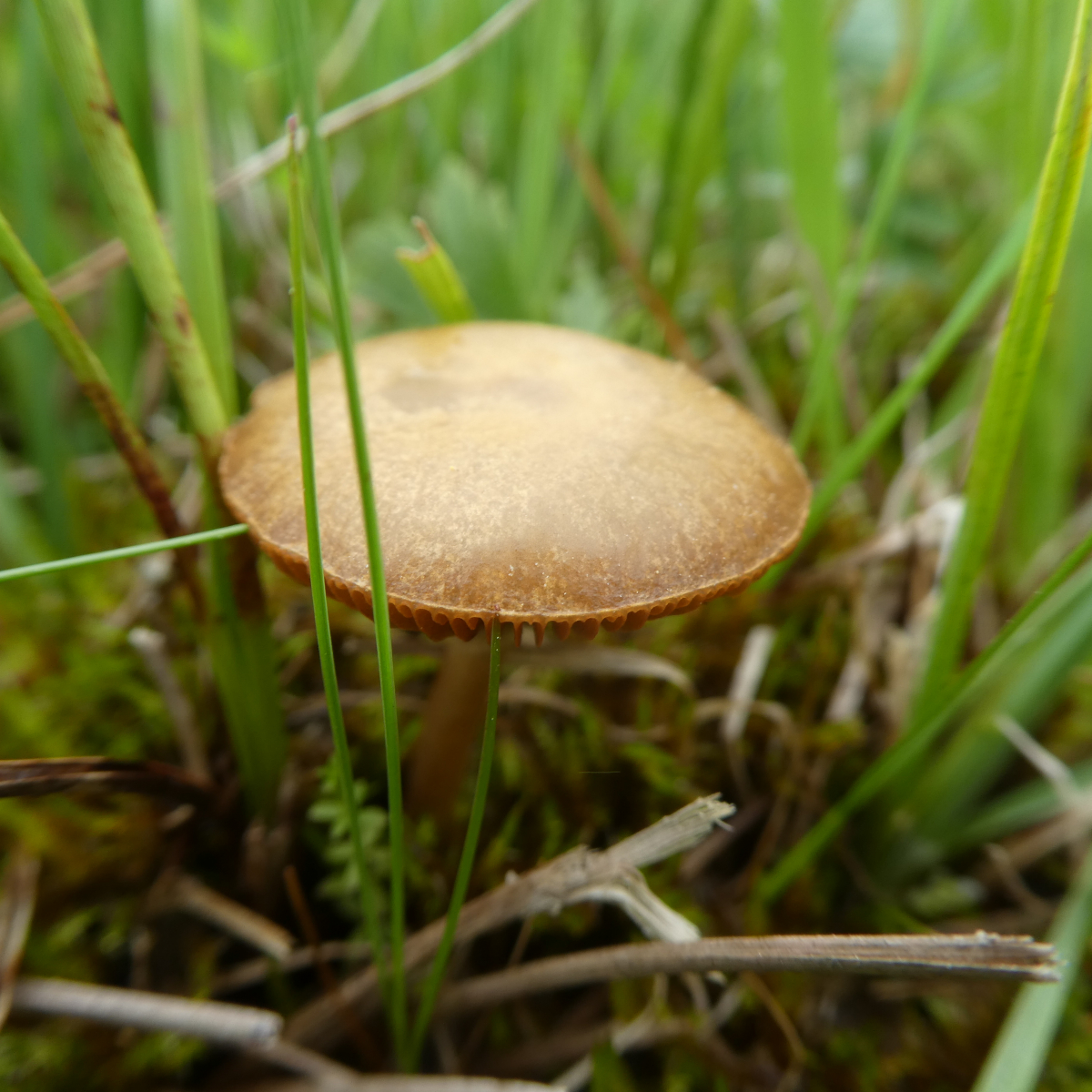 Dieser Pilz wuchs am Rande des Moores neben Gebüsch und einem geschotterten Weg im Gras. Auch hier konnte ich keinen Geruch feststellen. Hutdurchmesser ca. 2 cm, Höhe ca. 6 cm wobei mir der Stiel abgebrochen ist - leider.