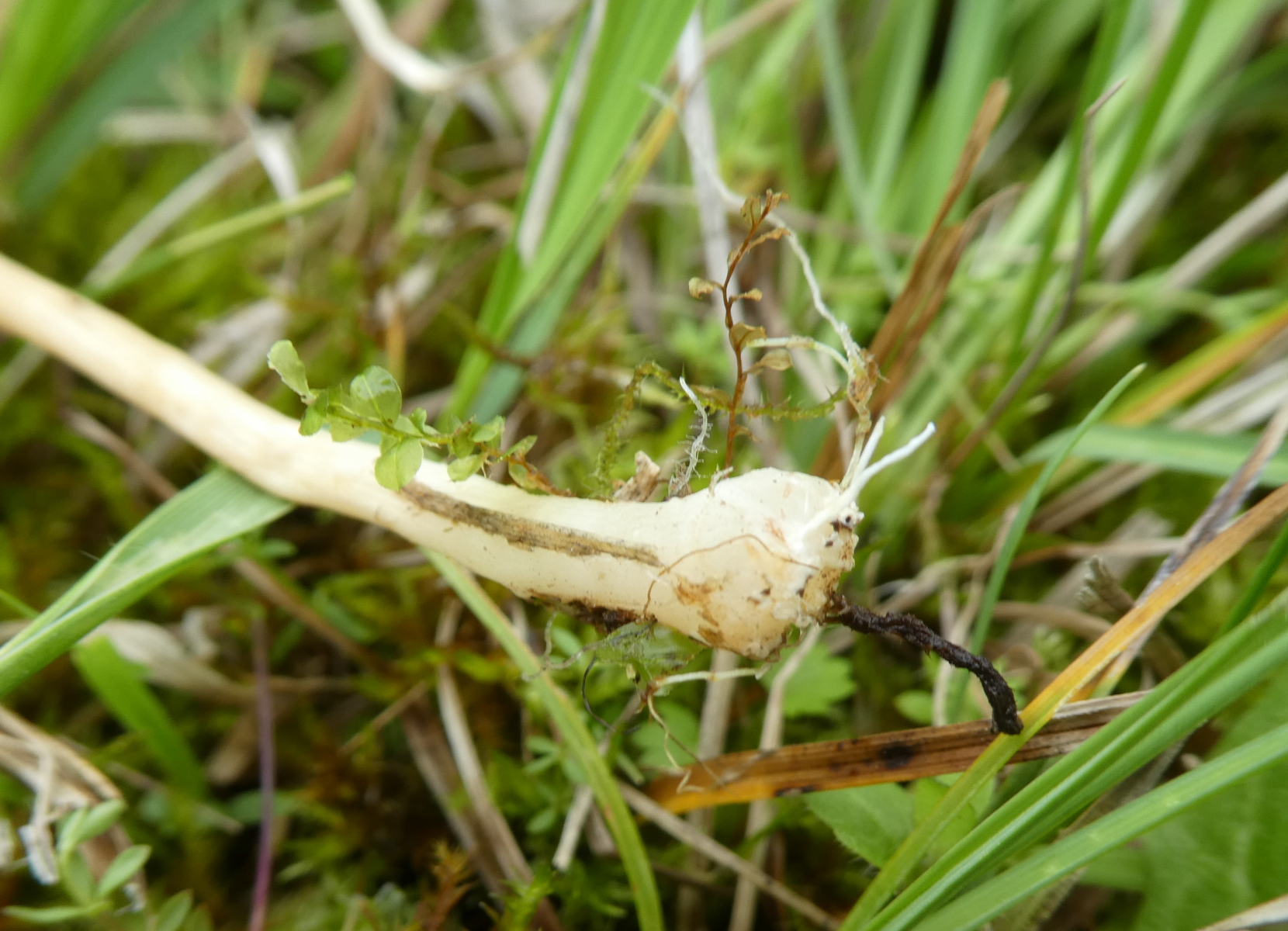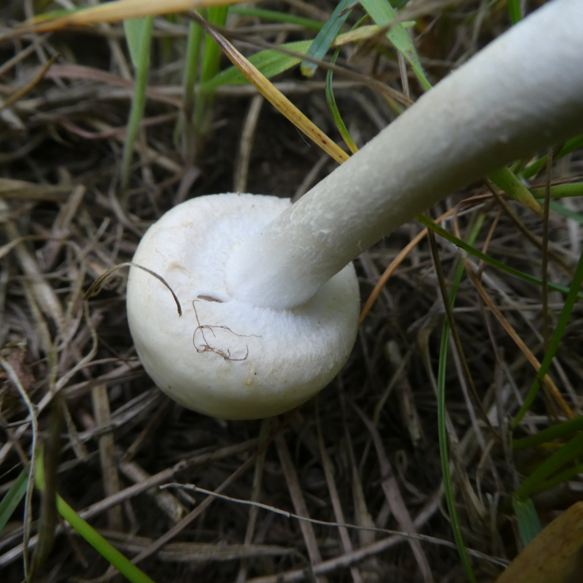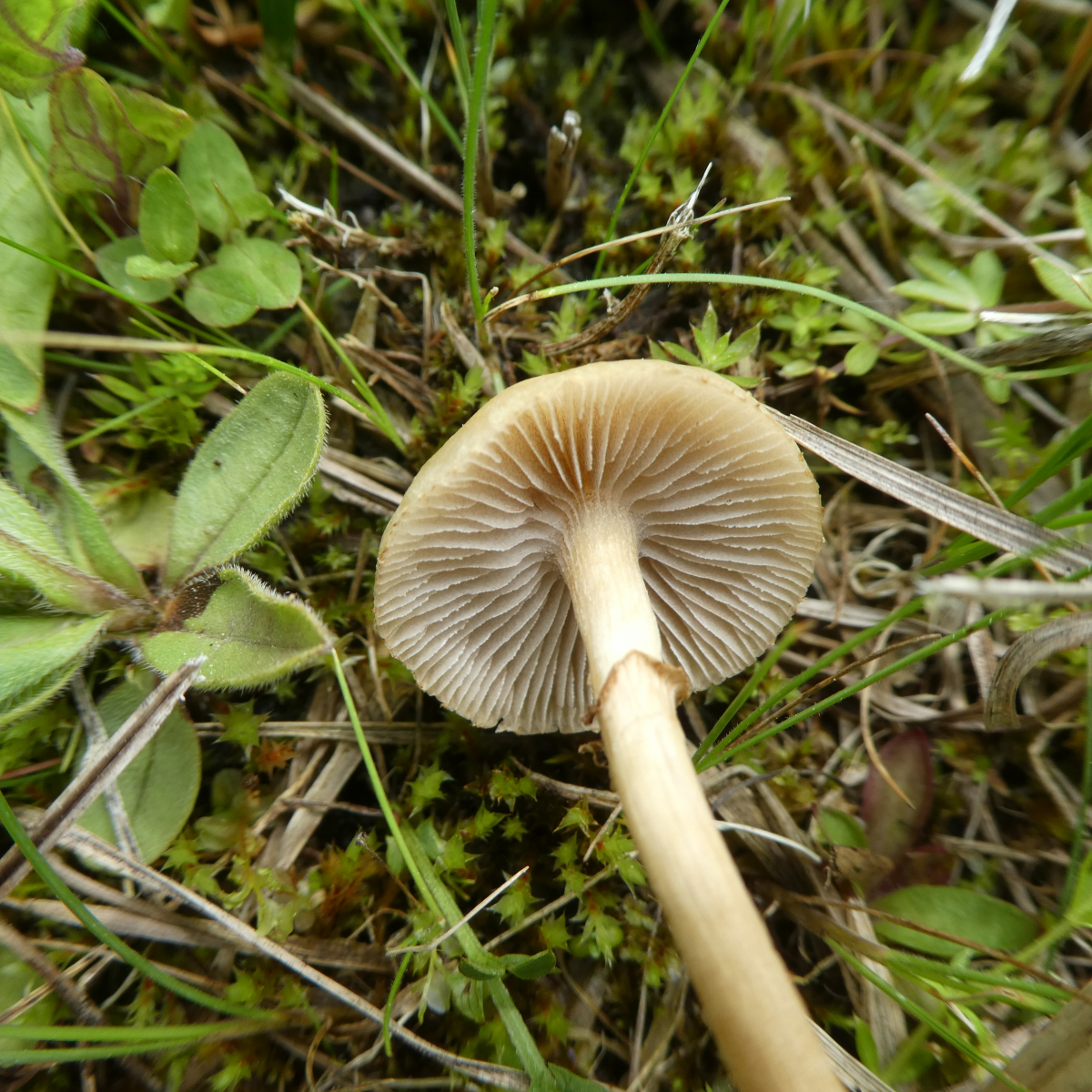 Dieser Pilz wuchs am Rande des Moores neben Gebüsch und einem geschotterten Weg im Gras. Auch hier konnte ich keinen Geruch feststellen. Hutdurchmesser ca. 2 cm, Höhe ca. 6 cm wobei mir der Stiel abgebrochen ist - leider.