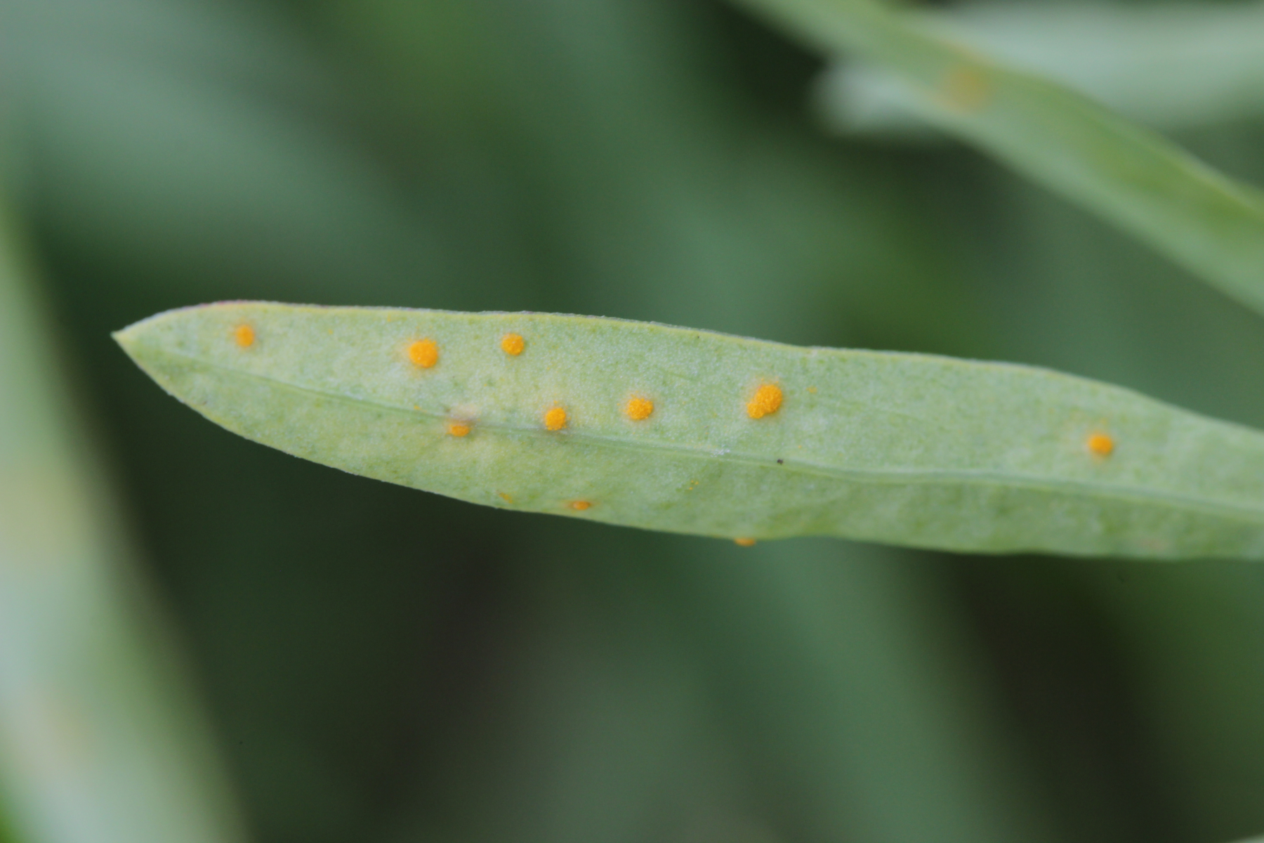 4. Ich schwanke zwischen Euphorbia esula und Euphorbia cyparissias. Der Rost sollte damit aber auf jeden Fall Melampsora euphorbiae sein.
