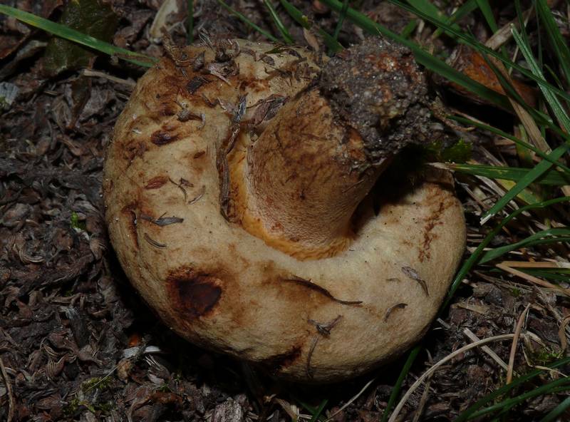 Der große mit dem schiefen Hut hat unterseits Lamellen, wie man auf dem zweiten, oben überbelichteten Bild sehen kann. Vielleicht ein Kahler Krempling?