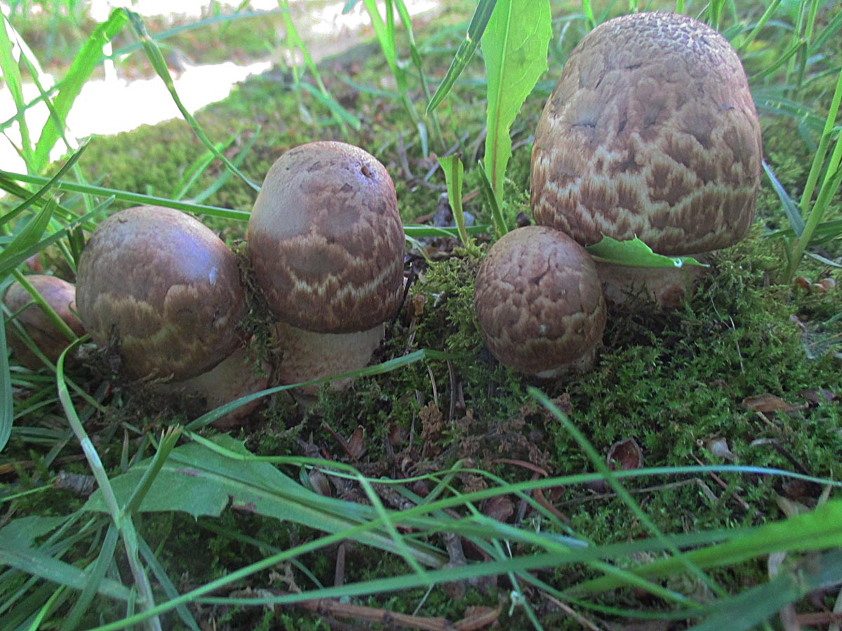 neben den eigenartigen Blutegerlingen gab es bei meiner heutigen Wanderung auch richtige Blutegerlinge (Agaricus langei) zu sehen. Solche die wie es sich gehört rot anlaufen und unter Fichten stehen.