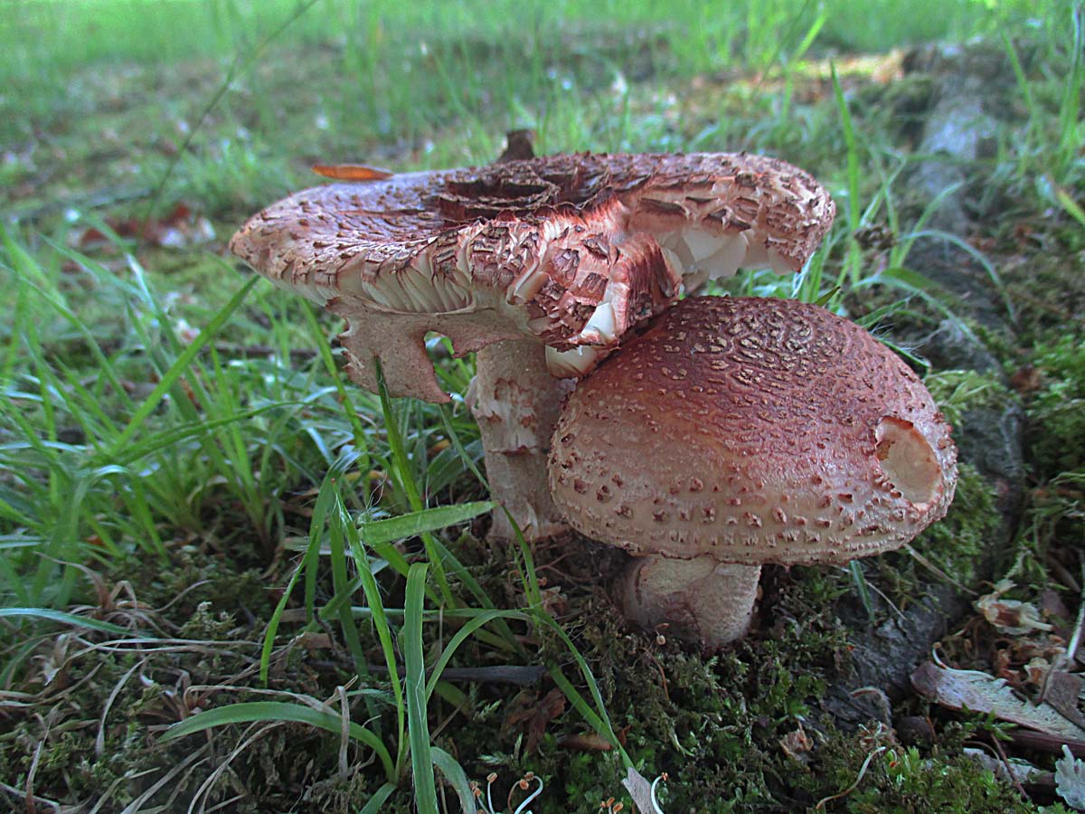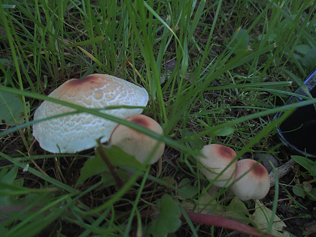 Dazu hatten sich auch noch ein paar Stinkschirmlinge (Lepiota cristata) auf die Rasenflächen verirrt.