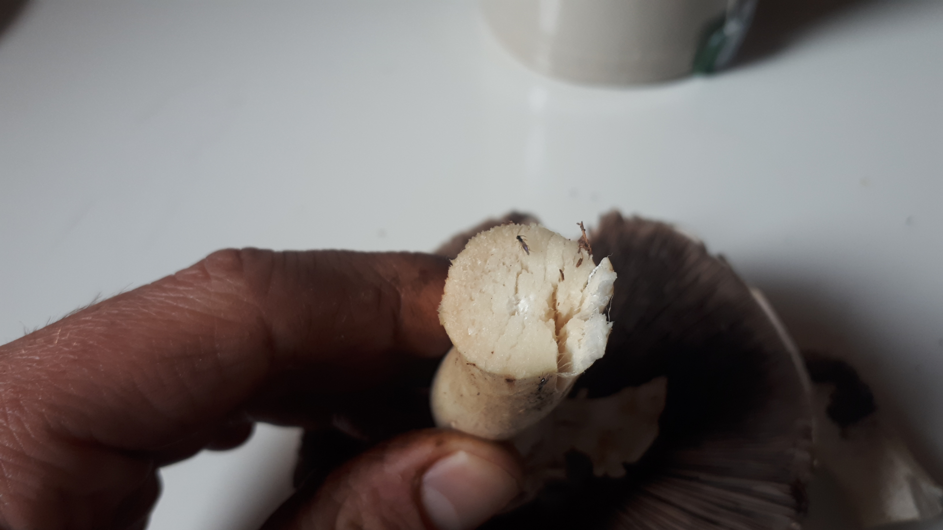 Fleisch bleibt weiß, Ring vergänglich, nicht verschiebbar, Hut... kaum geschuppt würde ich sagen, stil längs brüchig,spaltbar.
