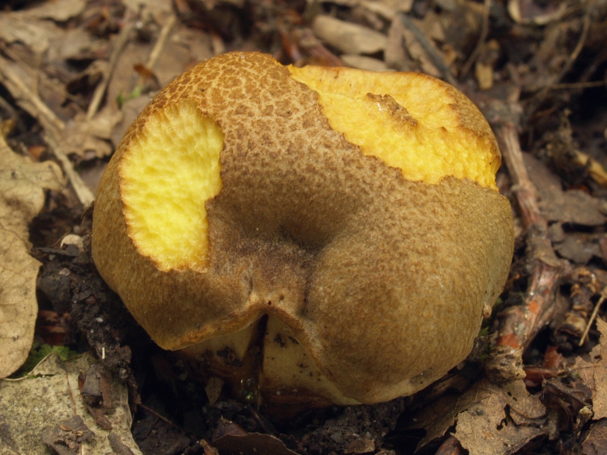 Den Anblick eines zerfressenen Täublings, von dem nicht mal mehr die Hutfarbe erkennbar war, möchte ich Euch ersparen. Leider war auch der Zustand von 5 Röhrlingen nicht wirklich sehenswert, aber da die Art nicht häufig ist. zeige ich sie trotzdem. Das war noch das am Besten erhaltene Exemplar