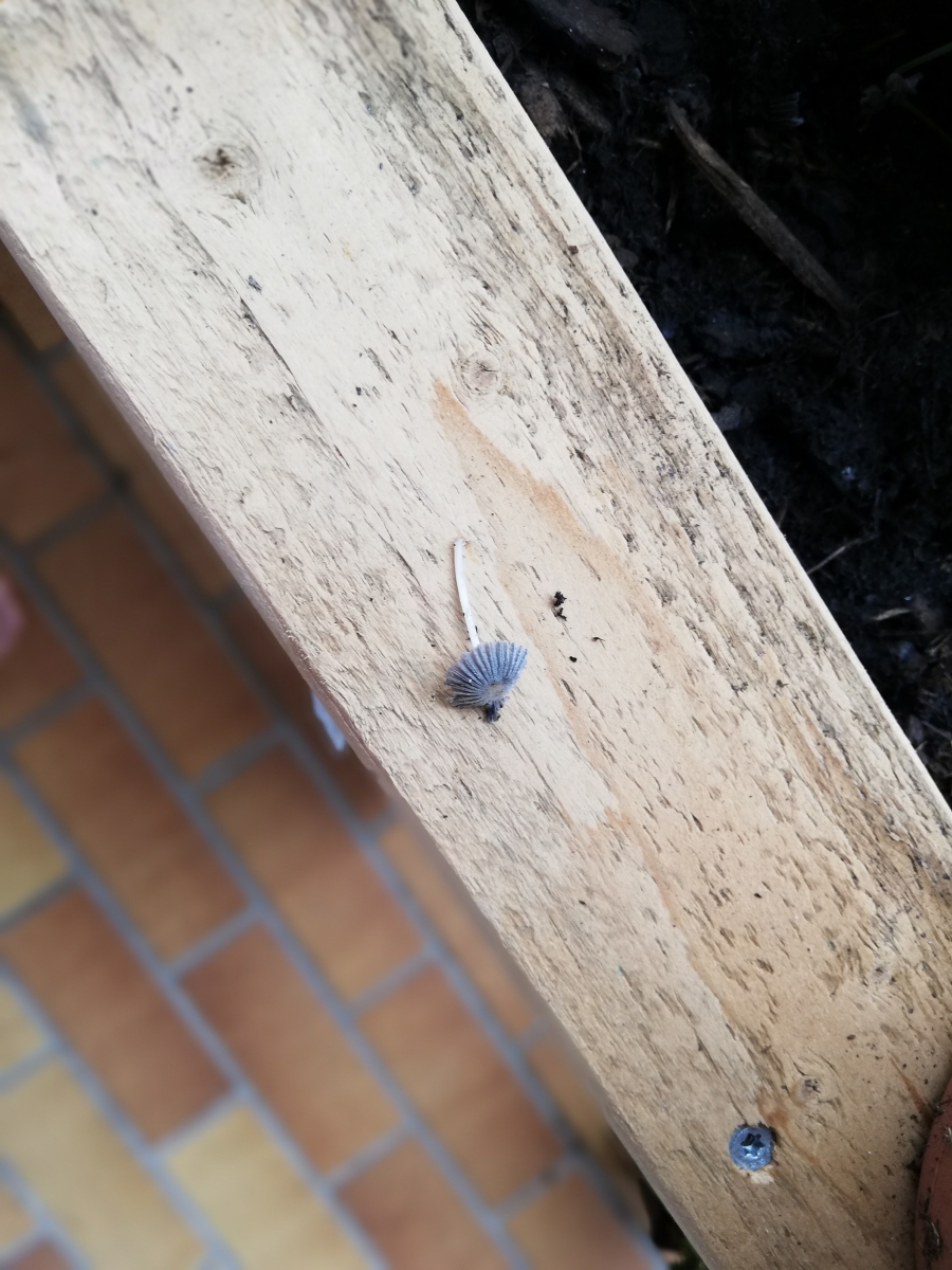 Das sind Pilze aus der Gattung Coprinopsis; also einer Teilgattung der Gruppe der Tintlinge. Die tun deinen Kräutern nix und sind sehr schnell zerflossen. Richtig "giftig" sind die auch nicht, allerdings ist es immer eine Sache, wie Kinder auf Rohverzehr von solchen Pilzen reagieren. Allerdings sind die so klein, ich glaube kaum, dass kleine Kinder so was interessant finden, zumal die sehr fragil wirken. Deine Kinder würden die eher bei Entnahme zerbrechen als die sich in den Mund stecken.