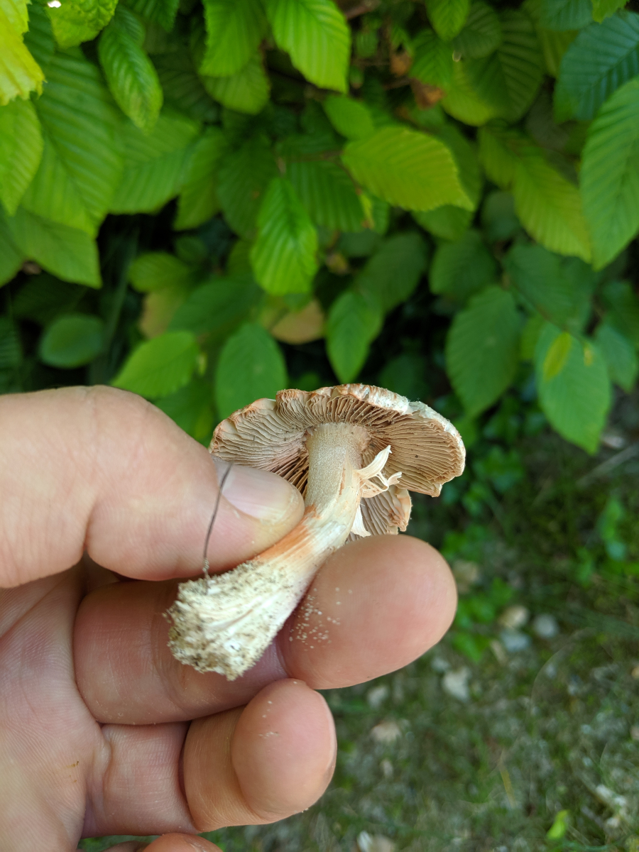 meine Kinder kamen gerade mit folgenden Pilzen an. Wachsen am Spielplatz. Ist das ein Ziegelroter Risspilz ??